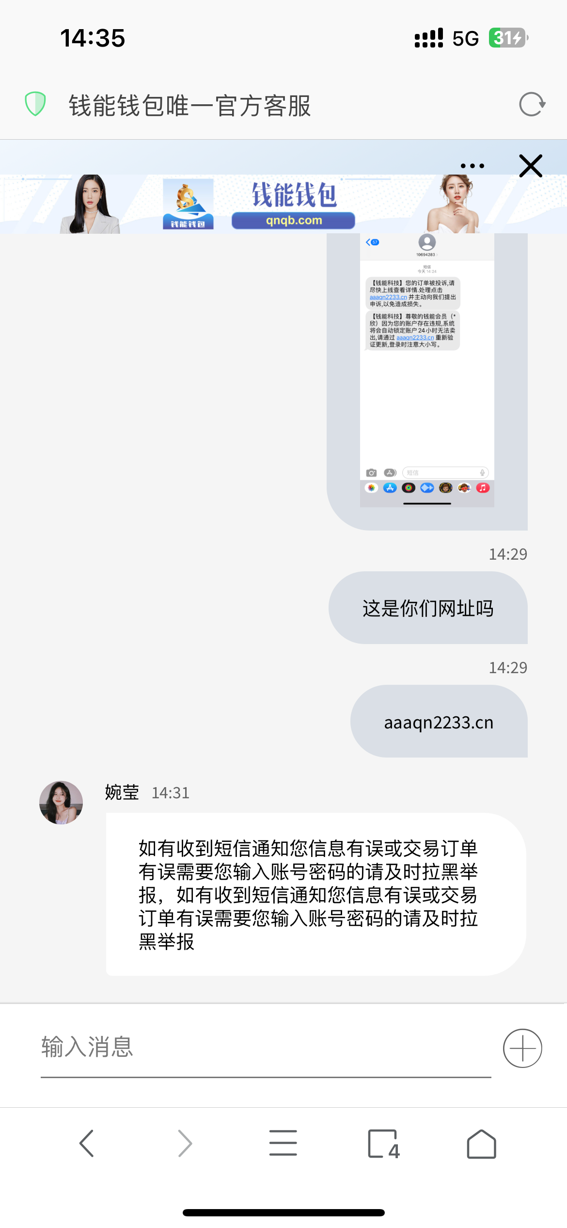 钱能钱宝发短信钓鱼账号密码和交易密码自己上去同意订单