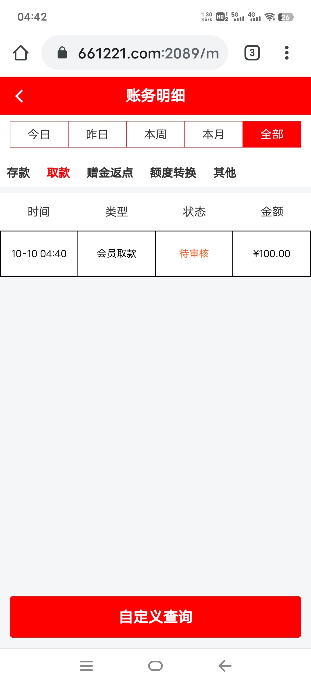 10-10 15:06        K宝取款        待审核        ¥288.00打了几十个号不知道给不给出[em_10]