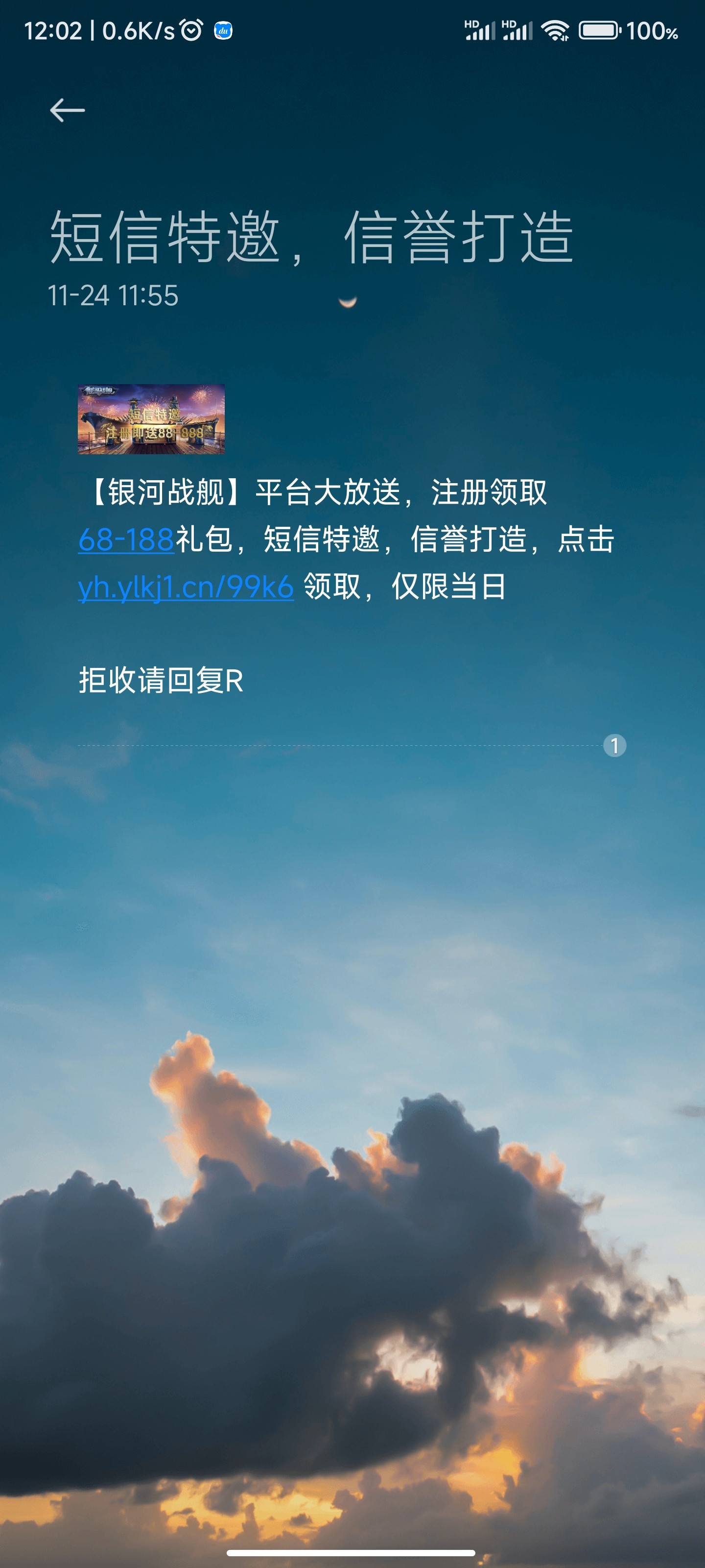 【银河战舰】平台大放送,注册领取68-188礼包,短信特邀,信誉打造,点击 yh.ylkj1.cn/99k6 领取,仅限当日