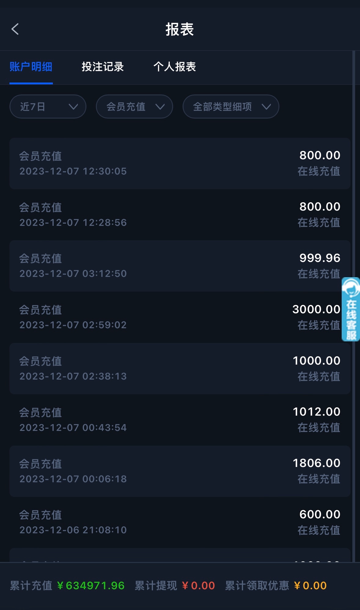 3297384303l 我记得这种模板的台子,你哪怕充值失败了他也会记录在充值金额里面,就相当于我充一百块钱充了十次成功了,我查的时候上面会显示累计金额一千