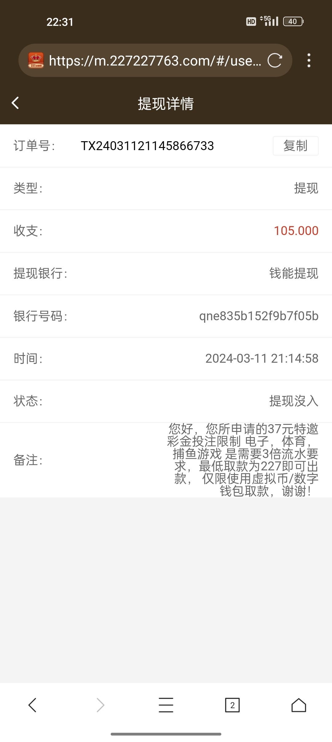 不支持提现