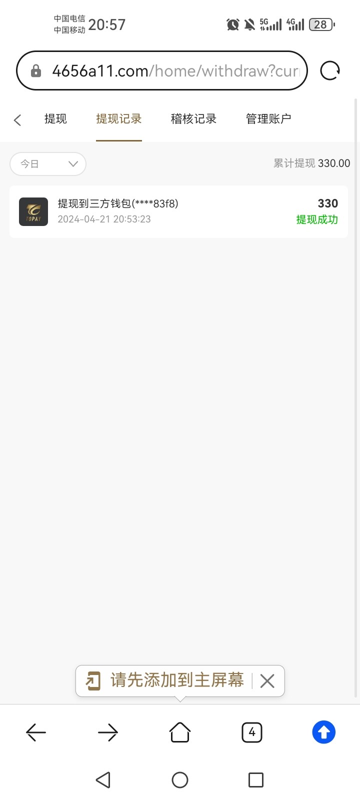提现已经到账