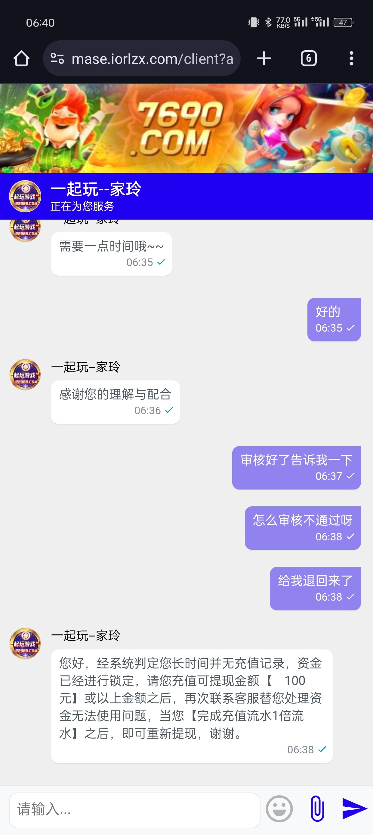 没充值半个小时到了