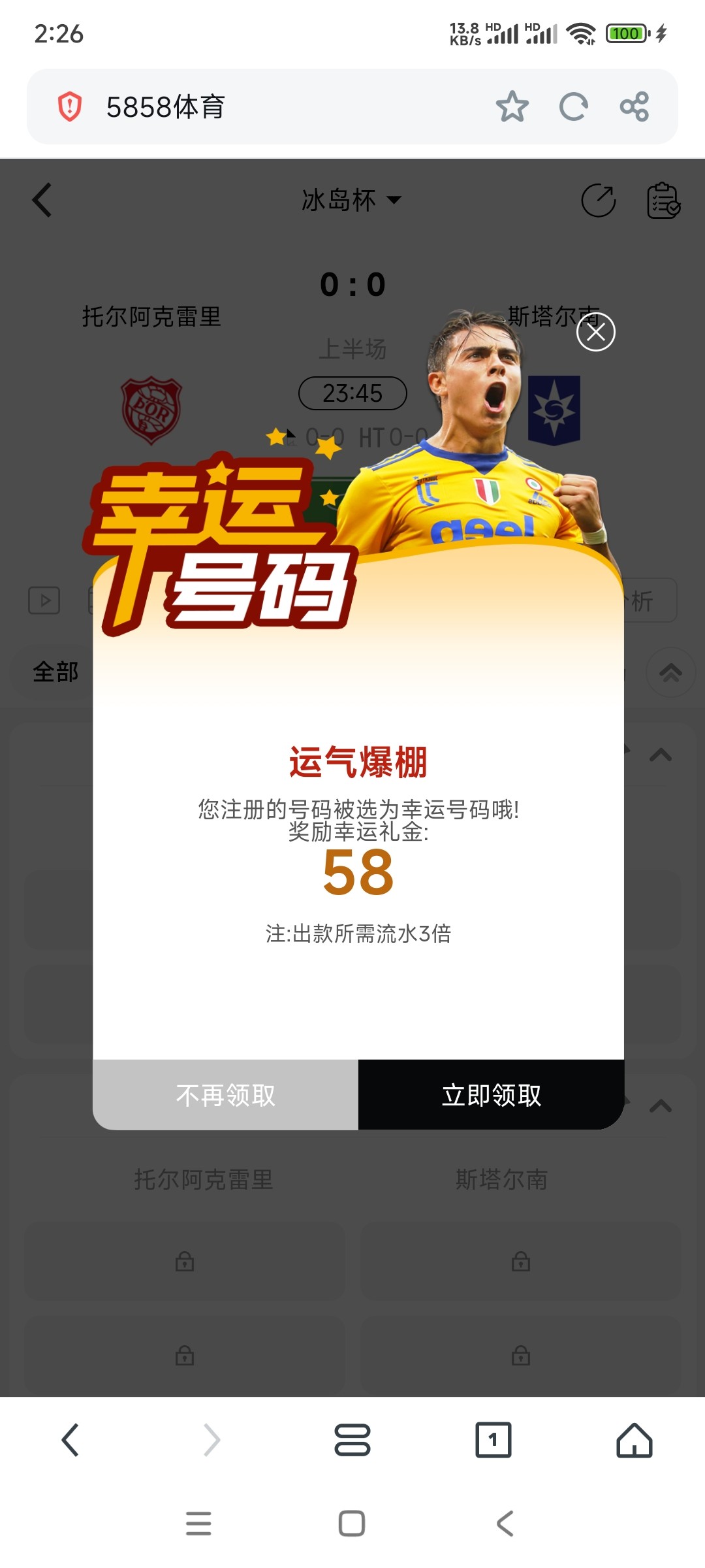5858特邀秒58元彩金