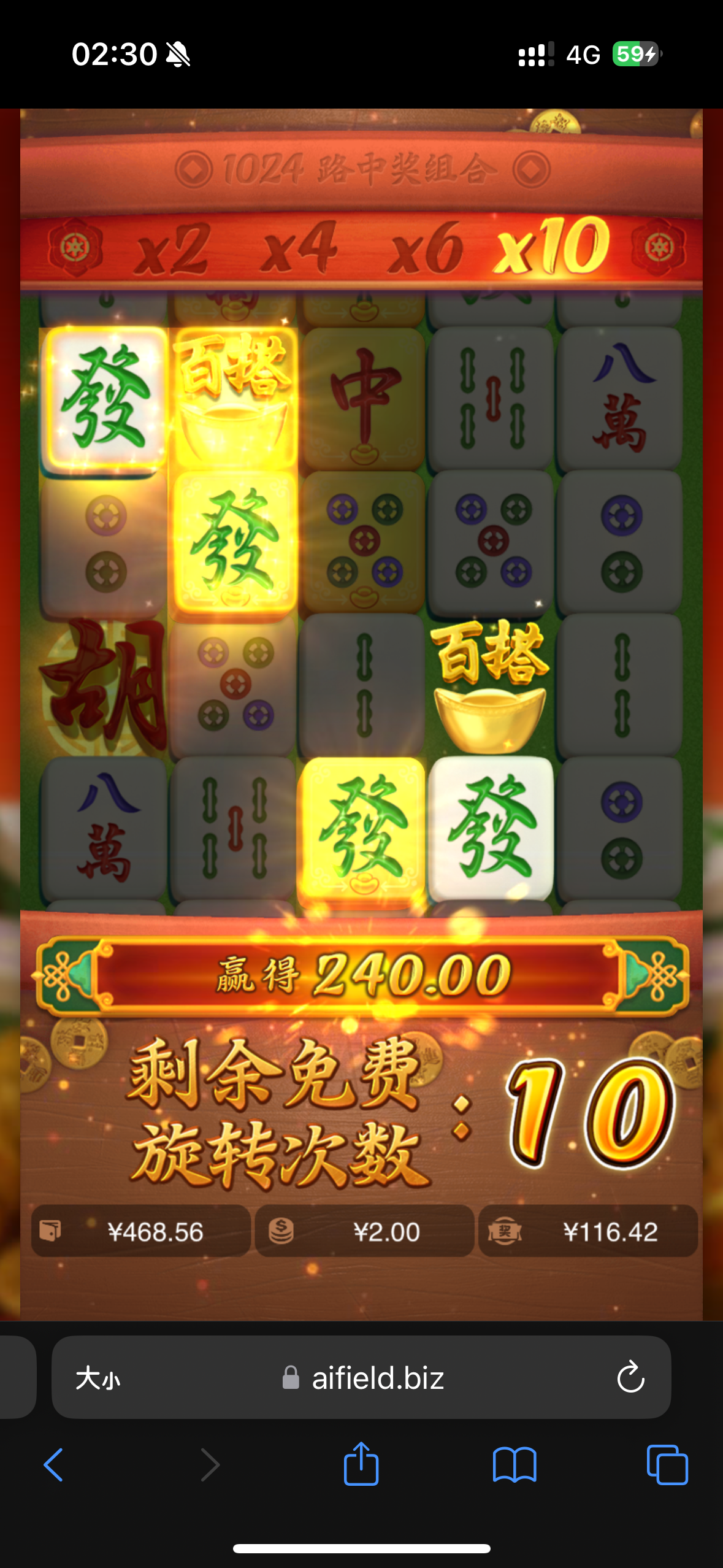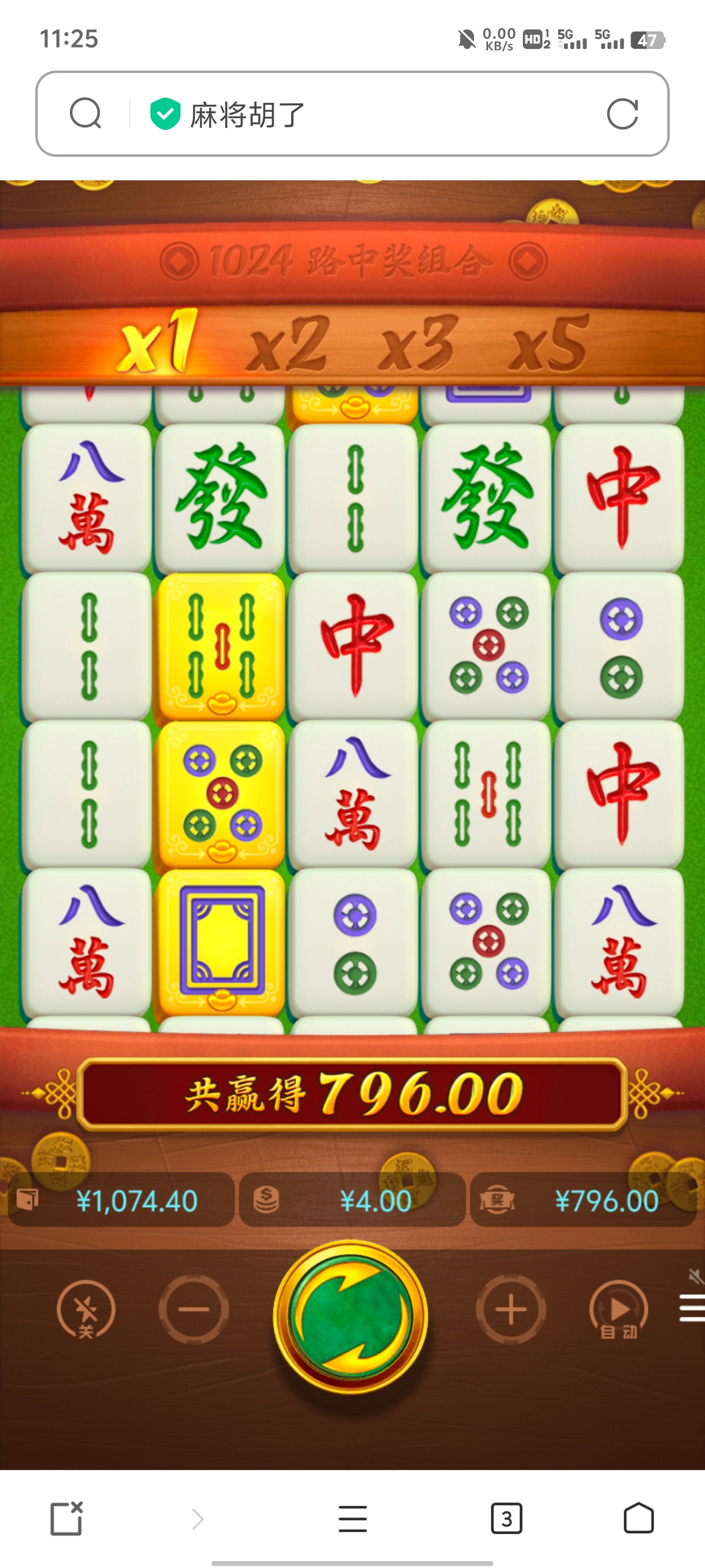 以小博大还可以 前几天收到短信29打出来150 刚才以小博大50上1079 麻将巨水 一开始拉2爆了200 然后我拉4又爆700多