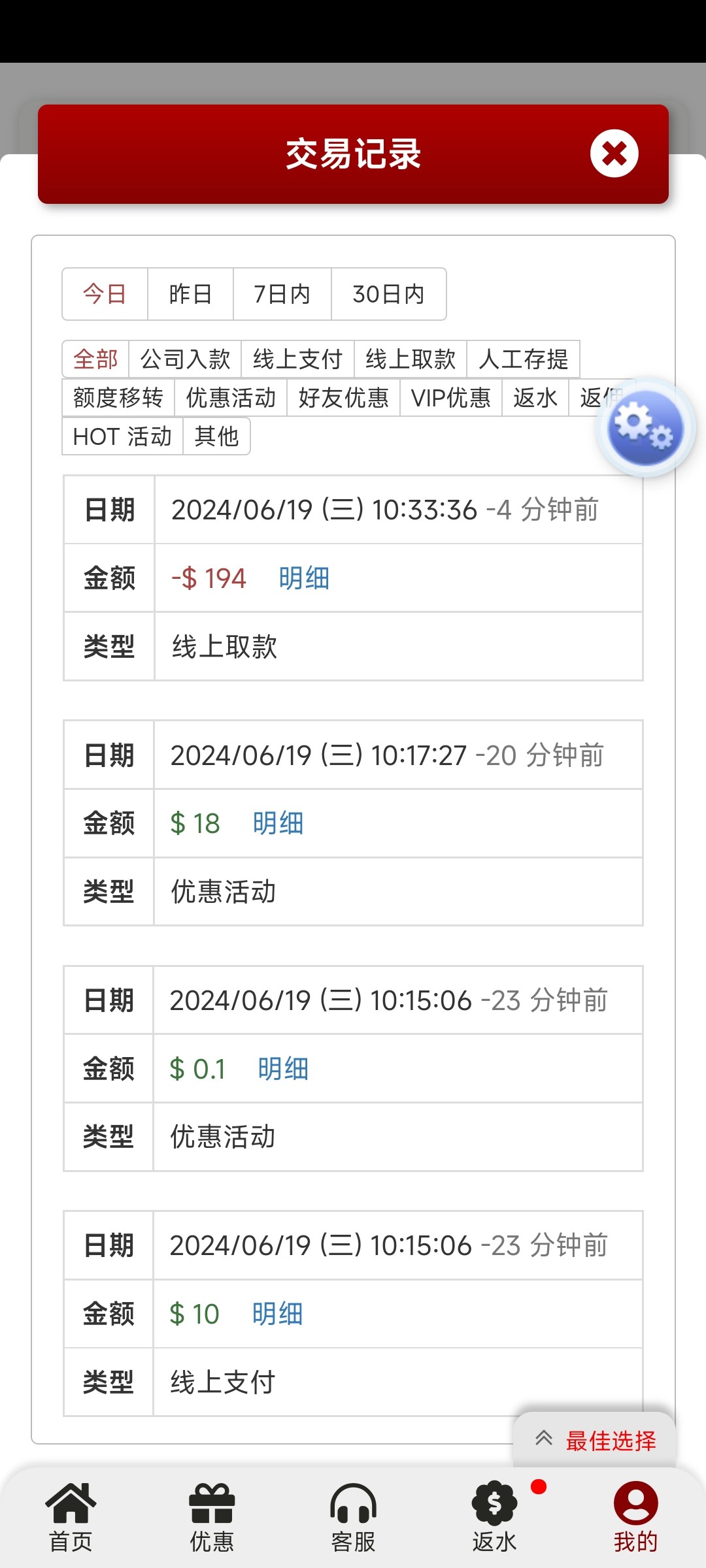 您好,由于申请人数过多,为避免影响客户游戏体验以及存取款,每天派发有限名额,今日名额已经派发完毕!您现在可以申请以下其他活动!