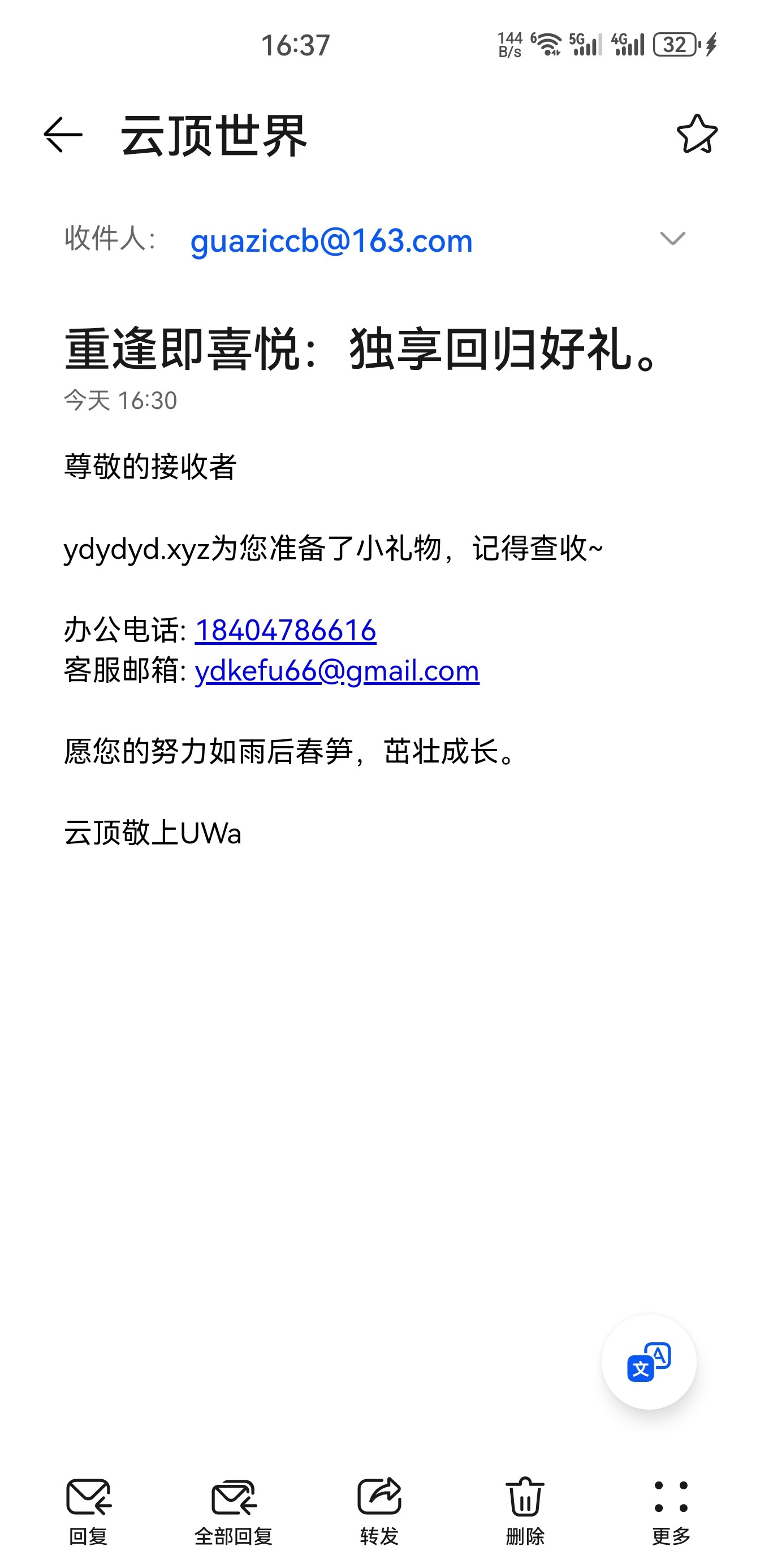 彩票系列邮件回馈彩