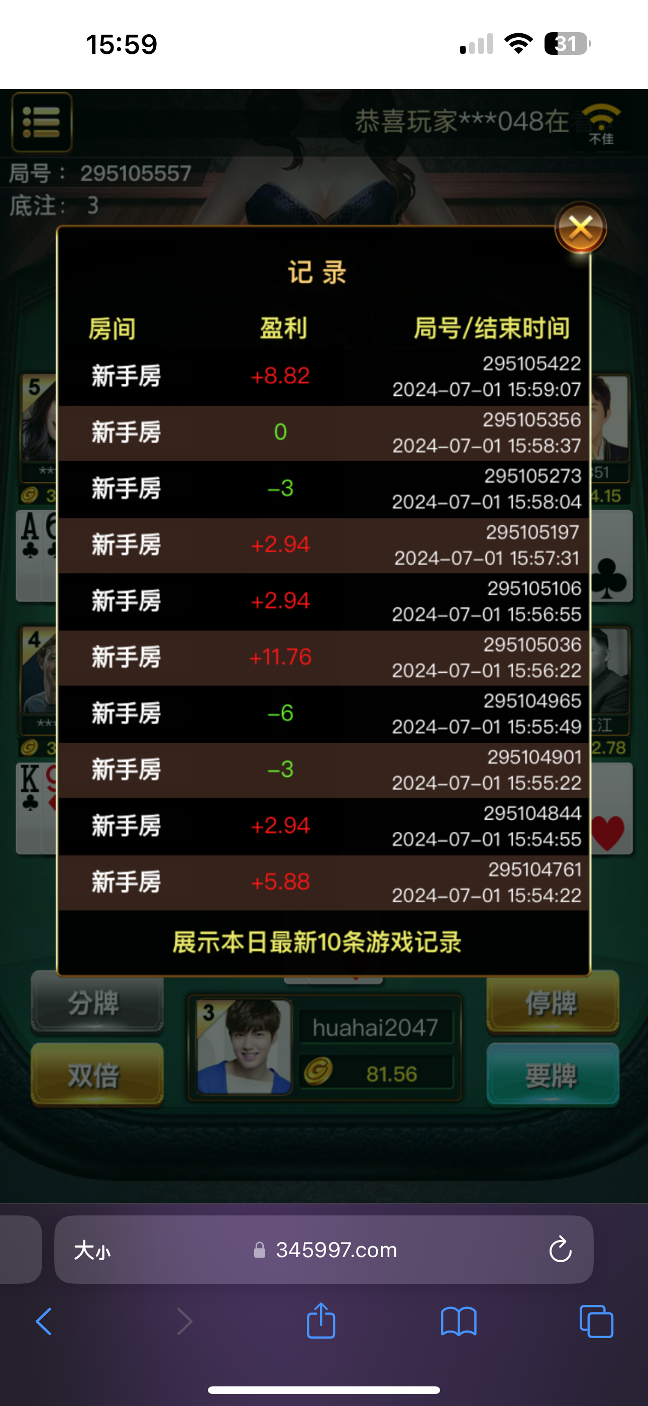 输完了 我没打出来 可以去玩21点 真心大水 我不敢梭哈 慢慢打到八十输完了