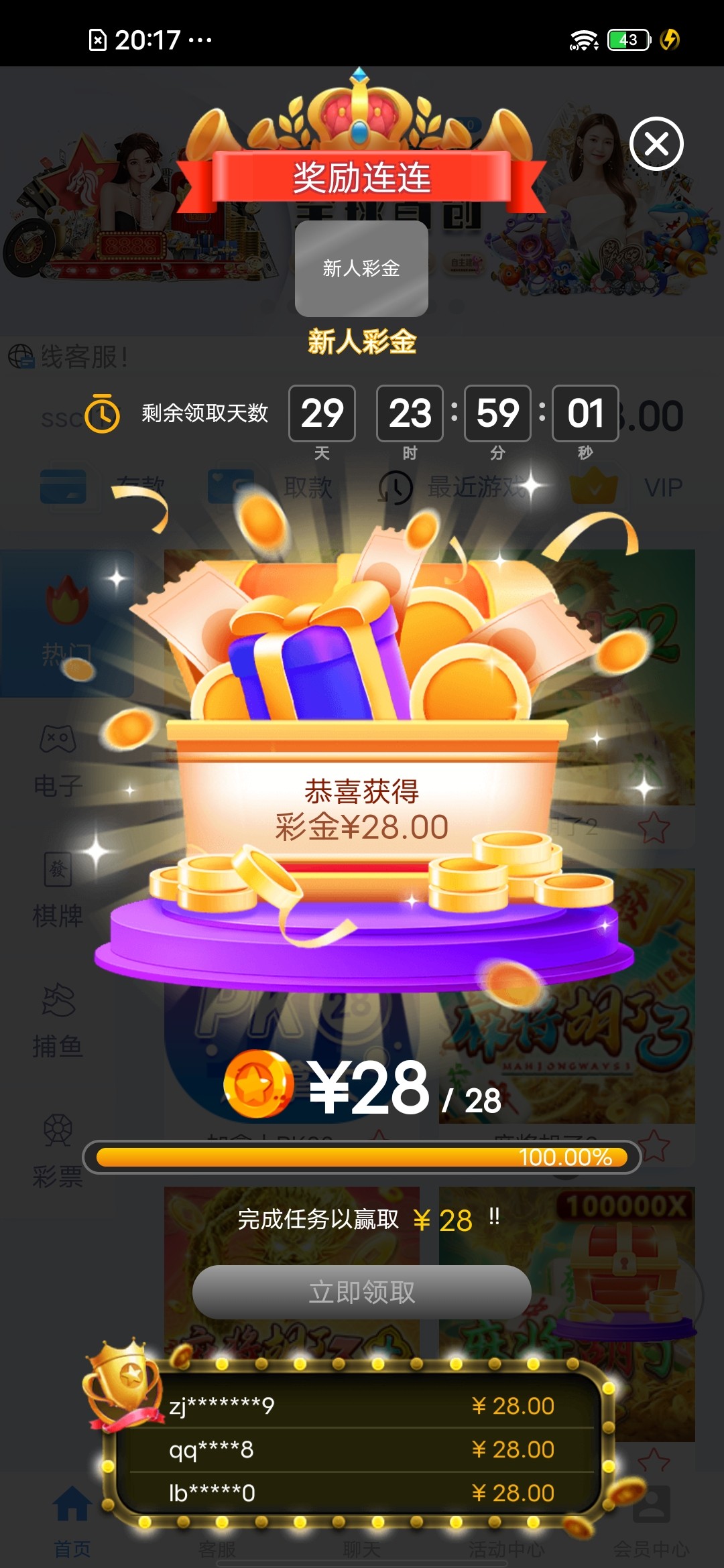 下载APP登录注册 首页有个宝箱点击领取