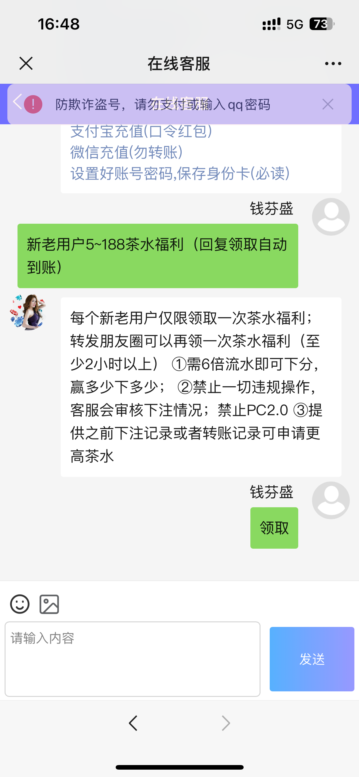 给客服发个  领取   秒送5  6倍流水下分 打多少提多少    不知道黑不黑自己去白嫖吧