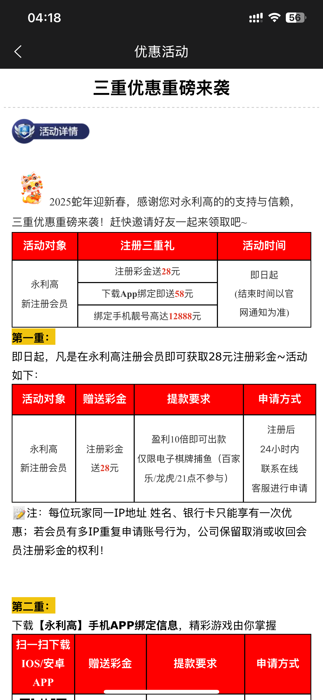 是这个网址,玩了很久的台子,之前没有新用户福利,现在才出来的。老用户福利少,之前还没加入精彩系福利挺多,每到节假日都有福利,其他网址131gg.net