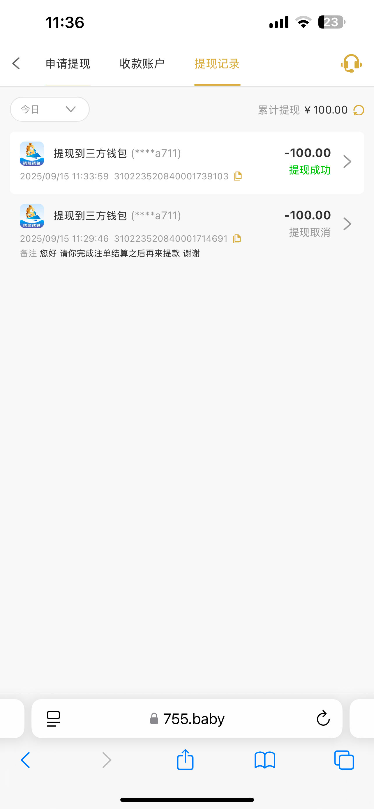 等到账