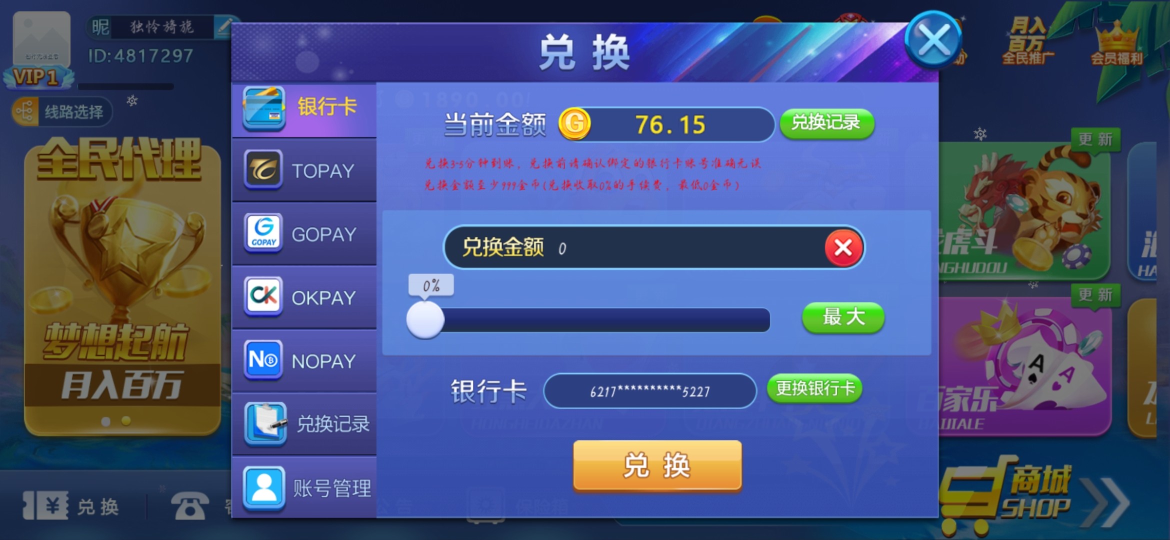 这台子,以前注册过应该,进去有余额76,提现最低999