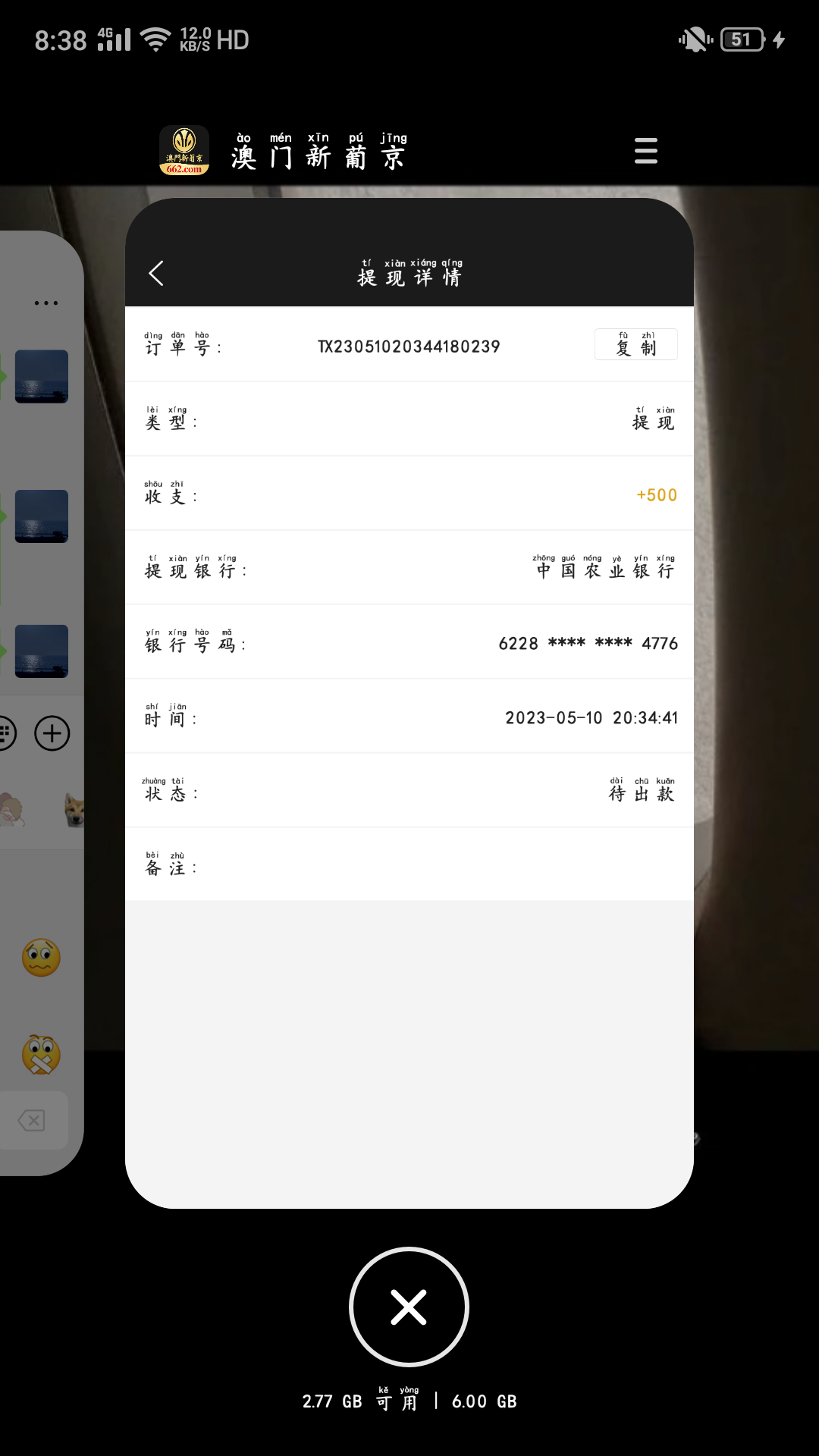 6个号全部显示已出款全部空汇