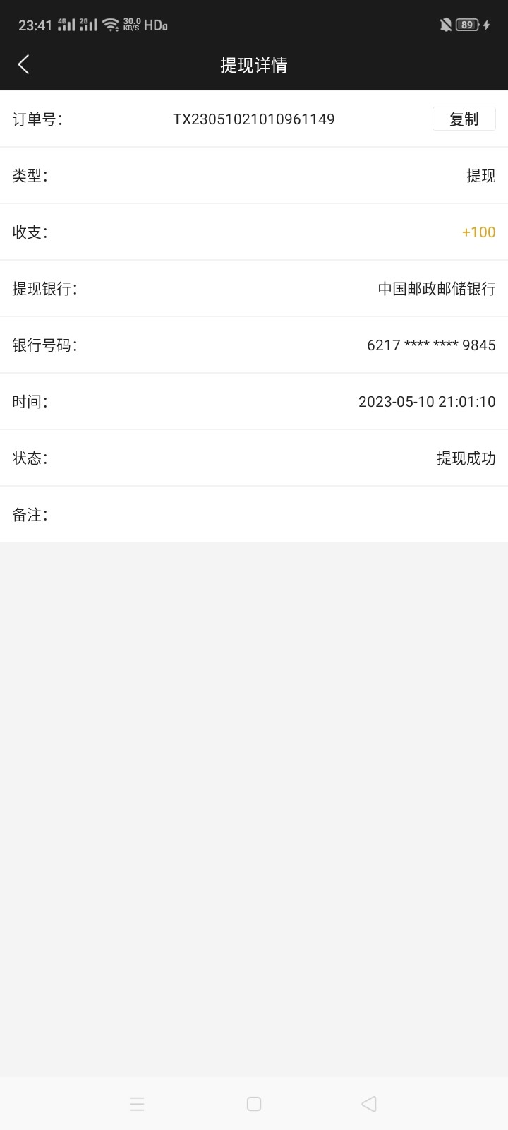 到了。兄弟们,我提了100送的16打的,出款到账
