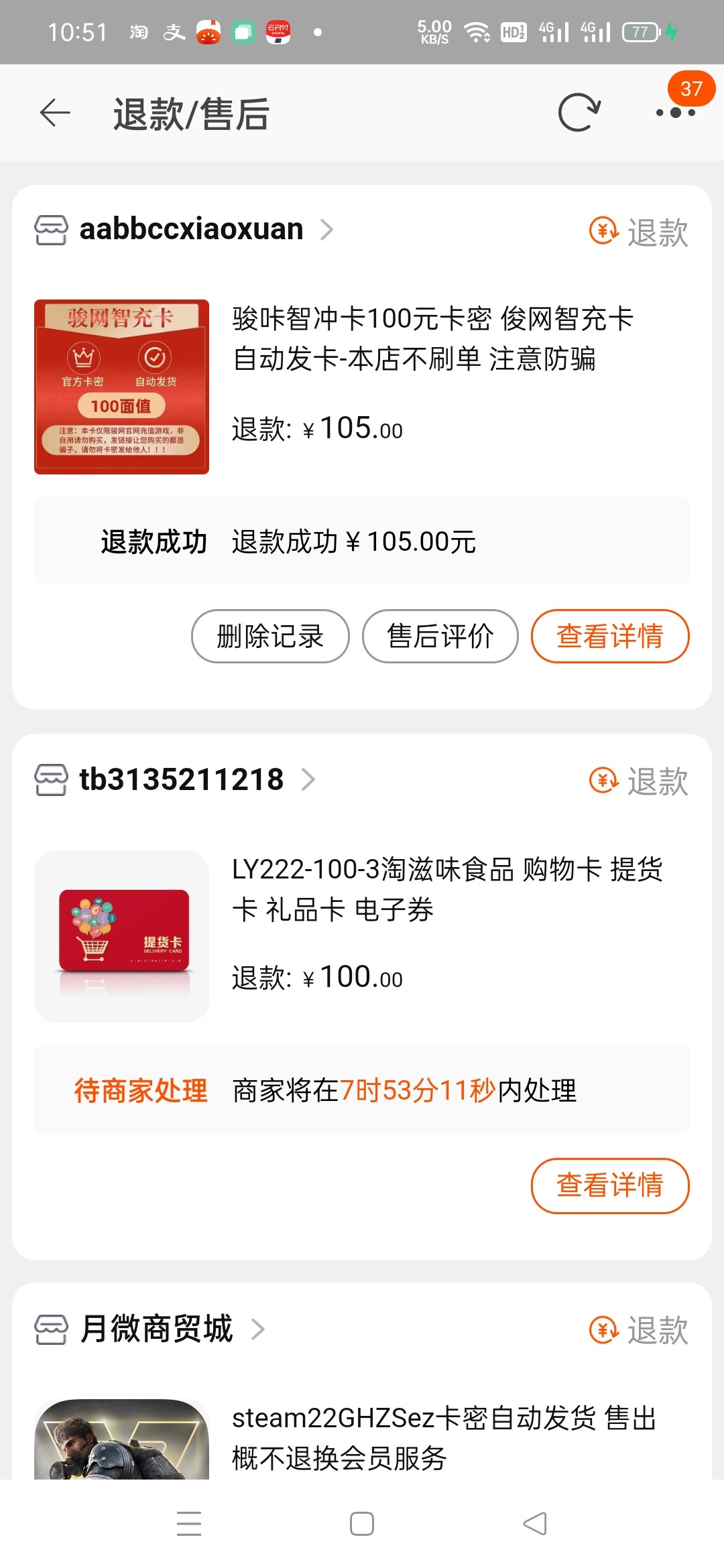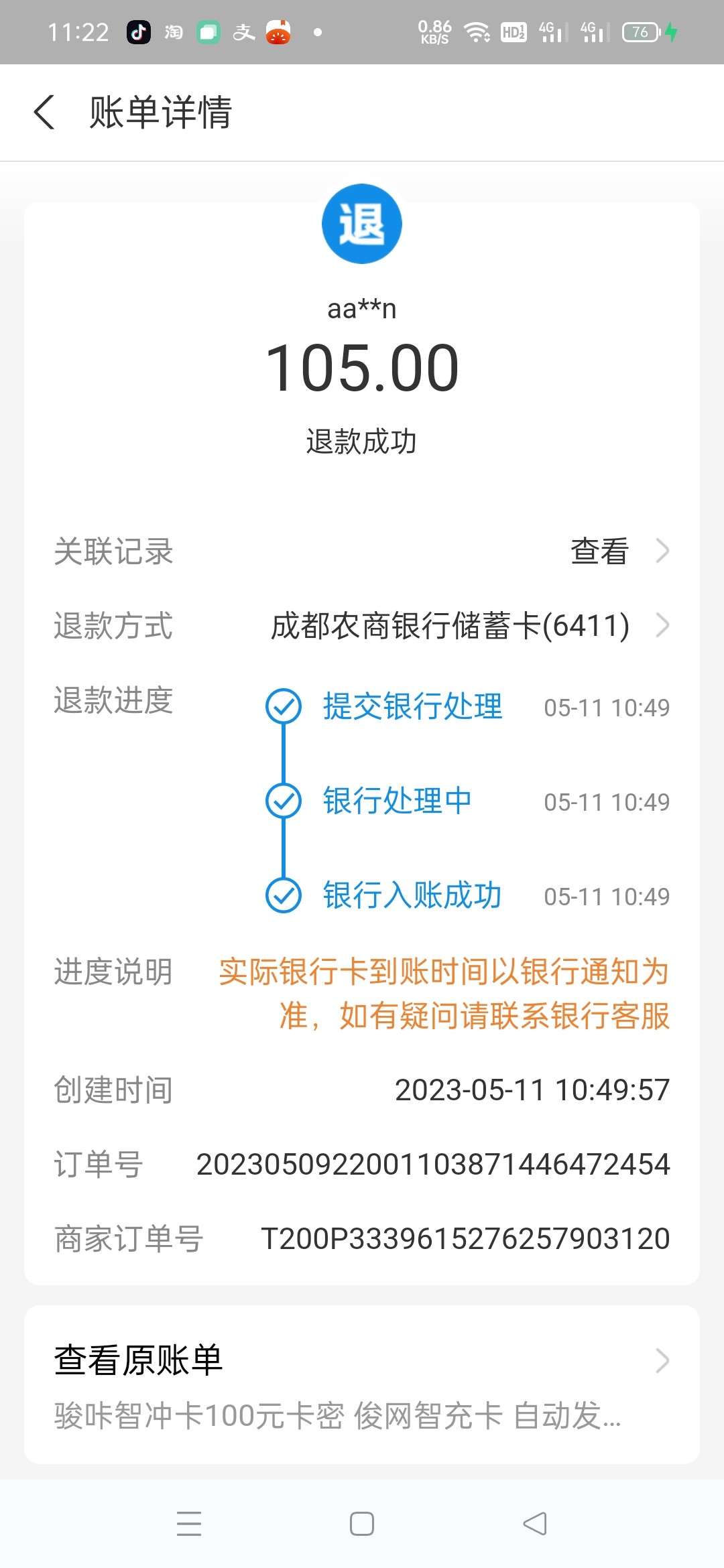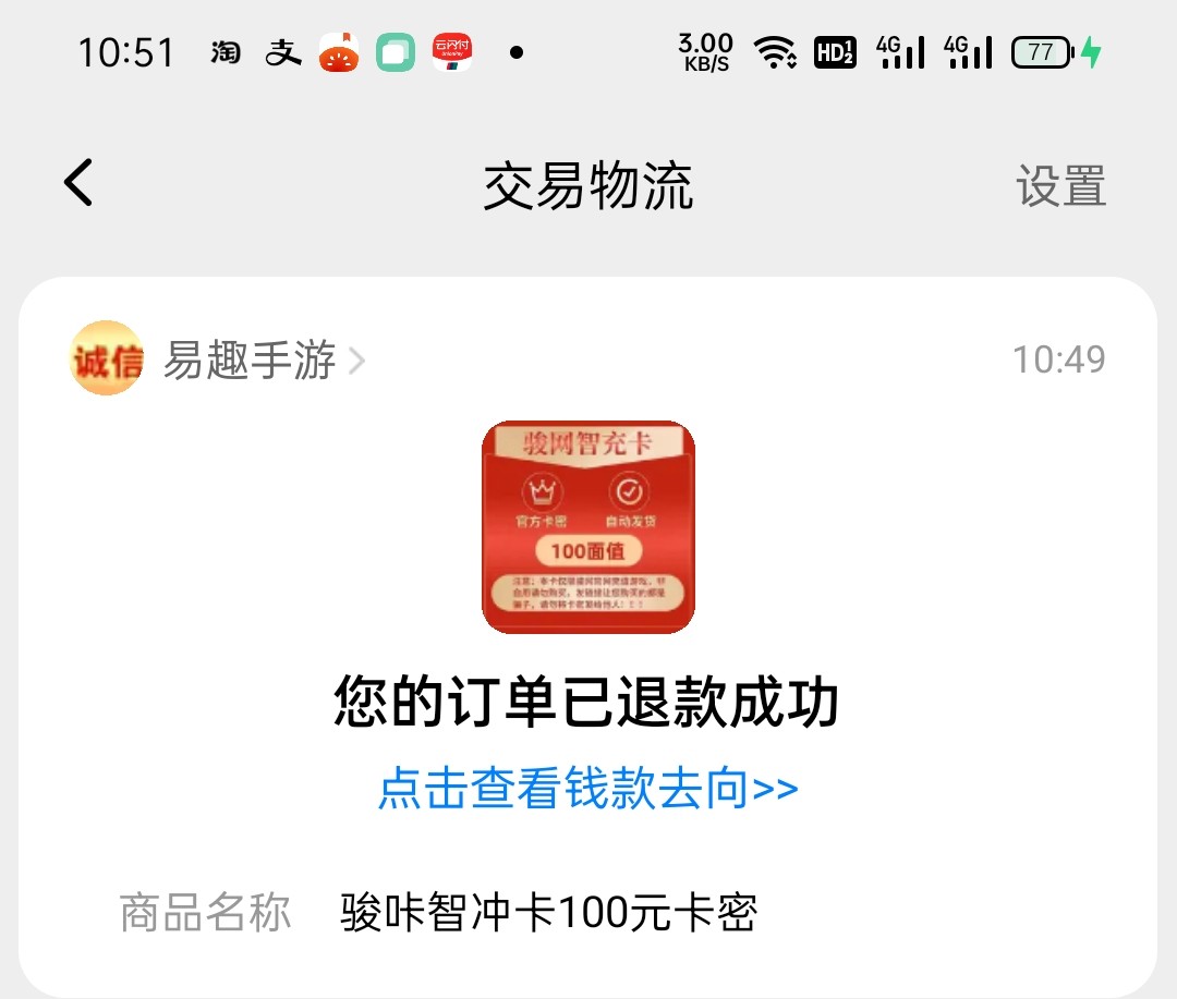 淘宝骏卡退款成功105
