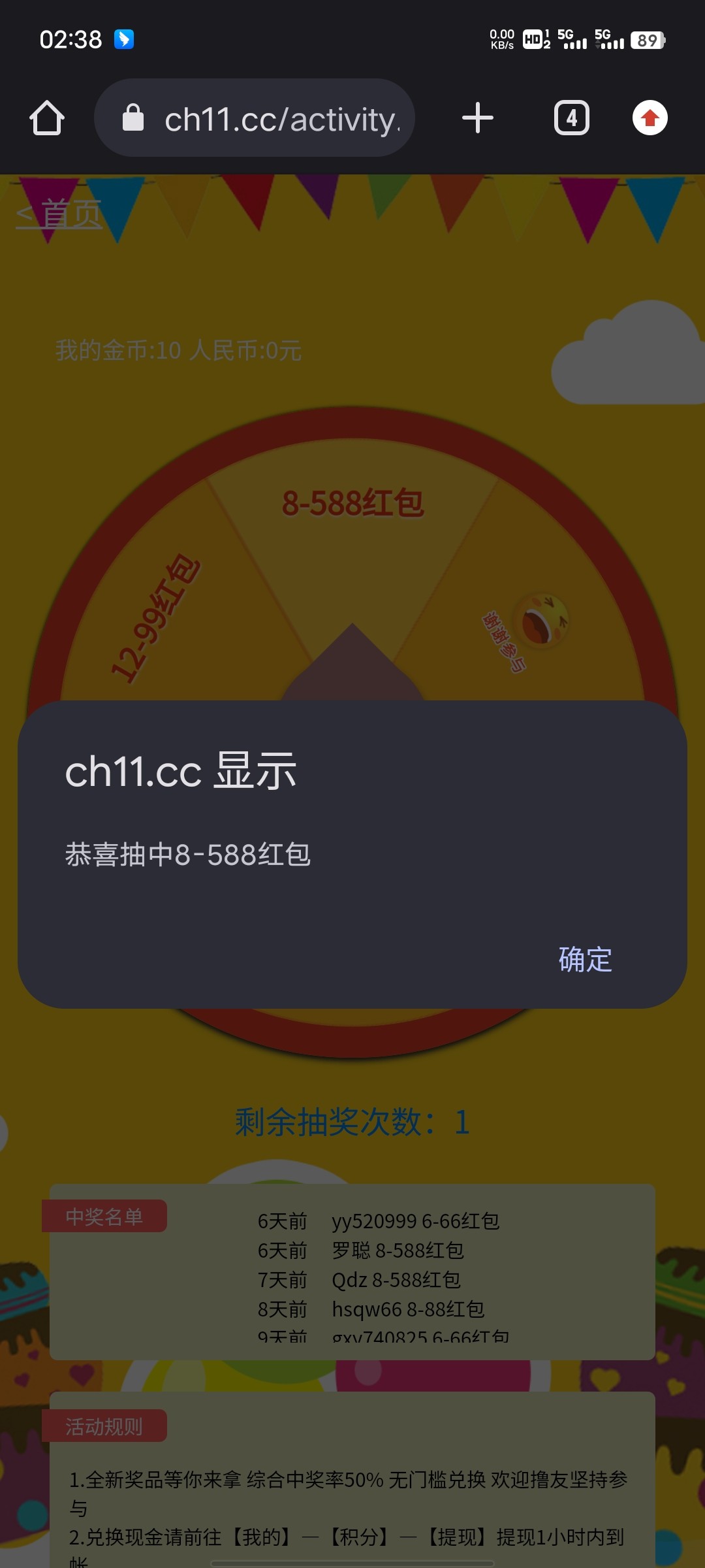 终于中了一次了
