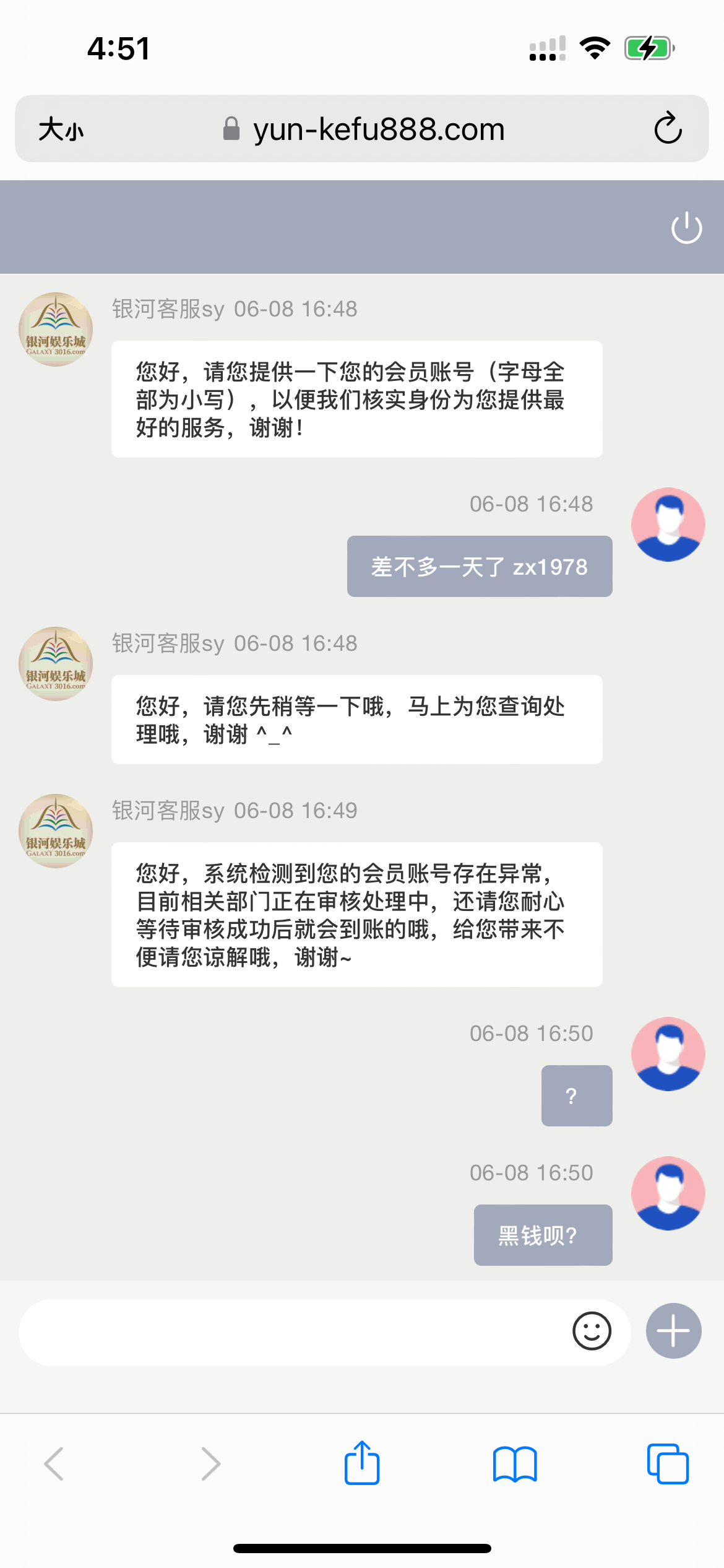 snbq888 昨天100上450,一会说依次打款让我等待,一会说第三方在审核,给客服一顿忽悠才出款。