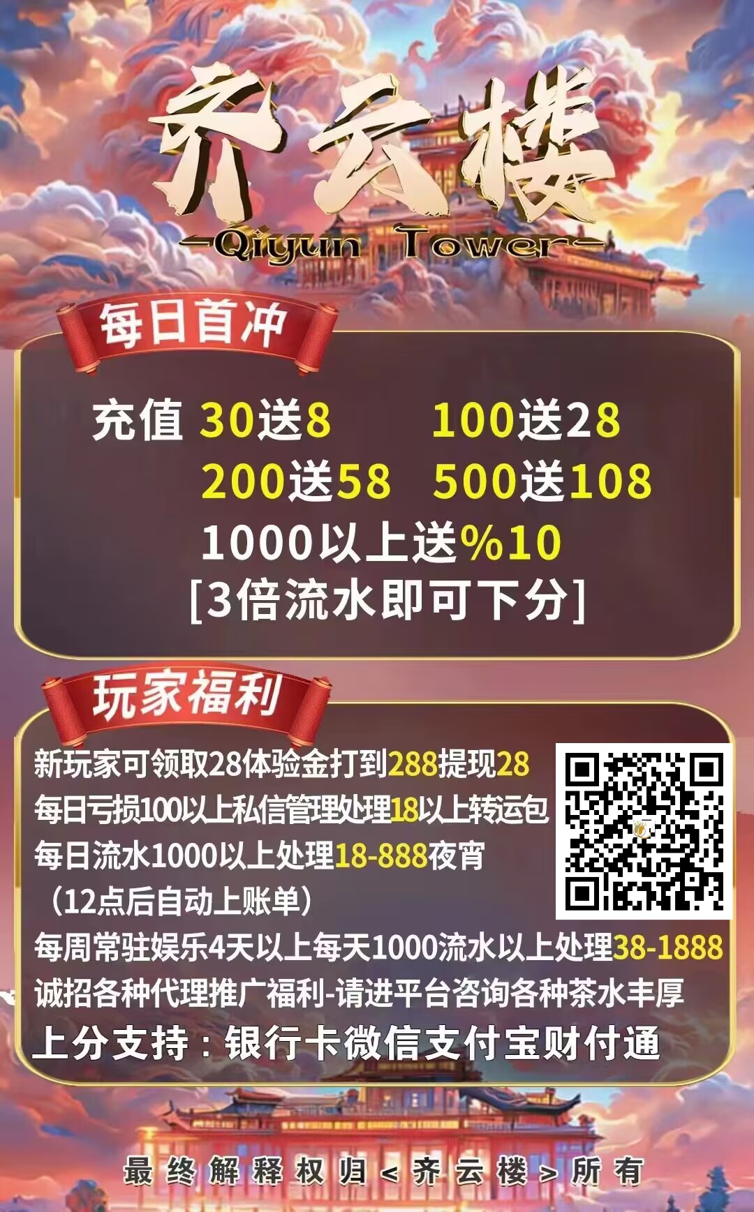 送28 288-588之间下分10%