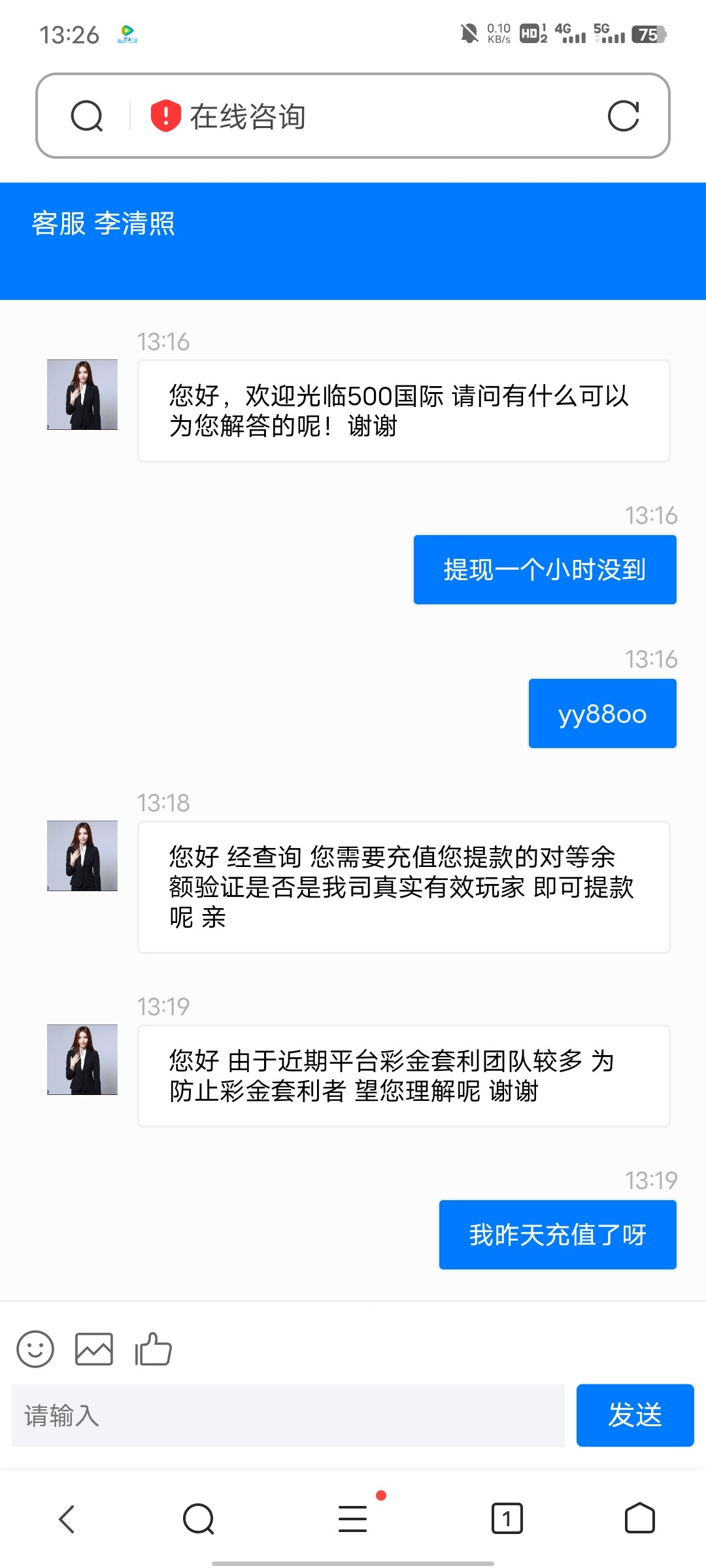 500国际黑台不要充,充100打到500提现要充值,不充直接拉黑了