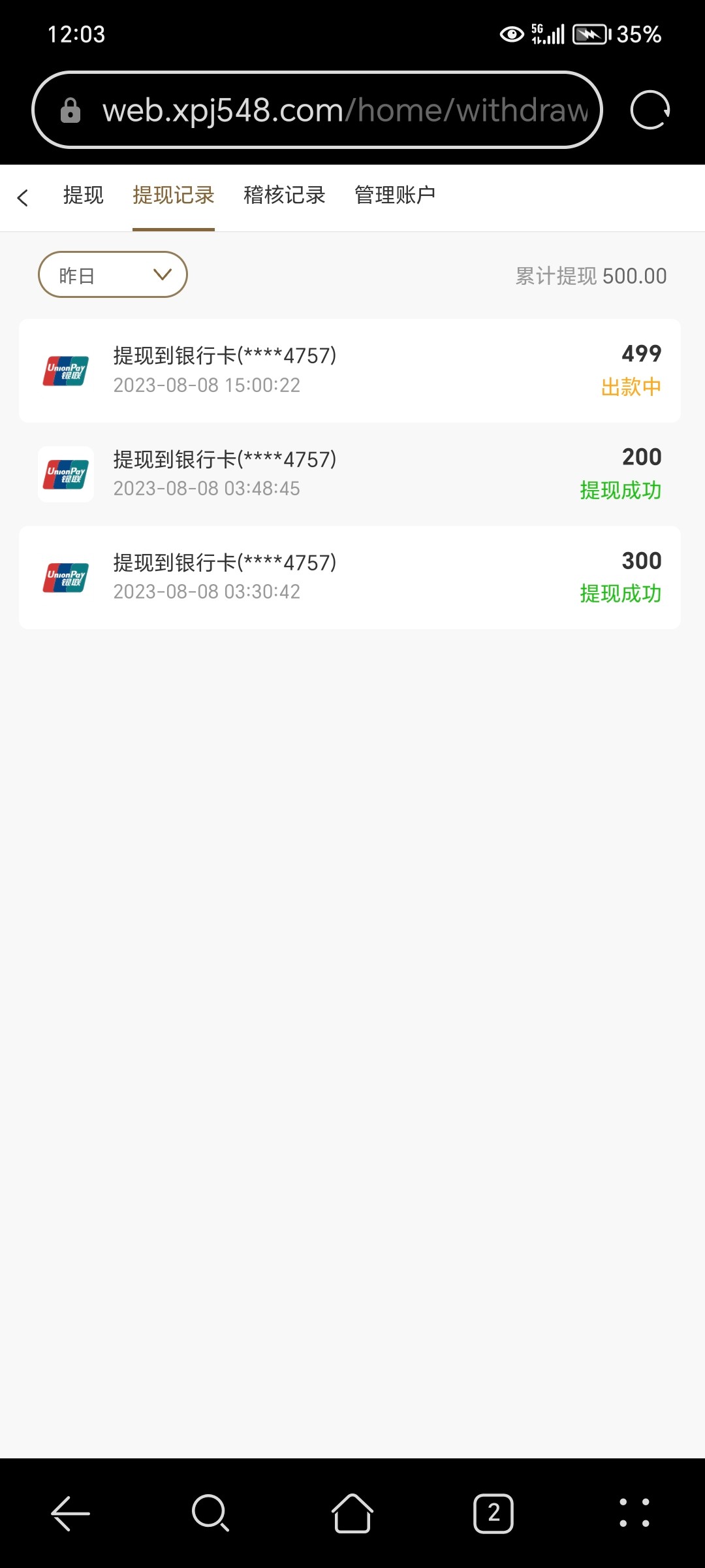 昨天上去看提现已经拒绝了,也没退回来,客服依旧不理人