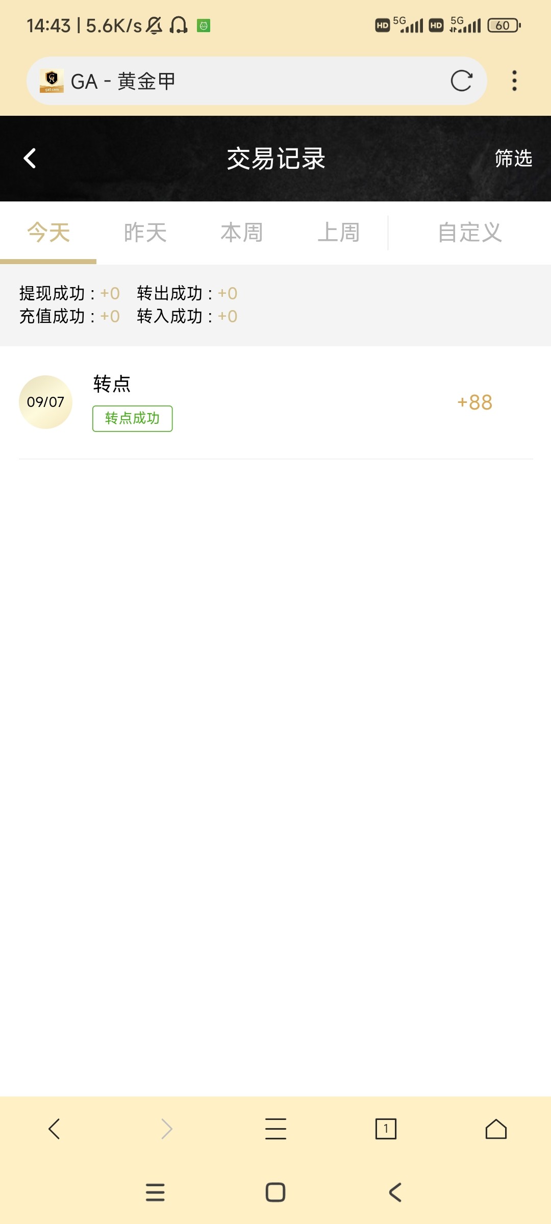 上个月黄金甲我冲过1200,看见公告有回馈彩金,领了88提了100
