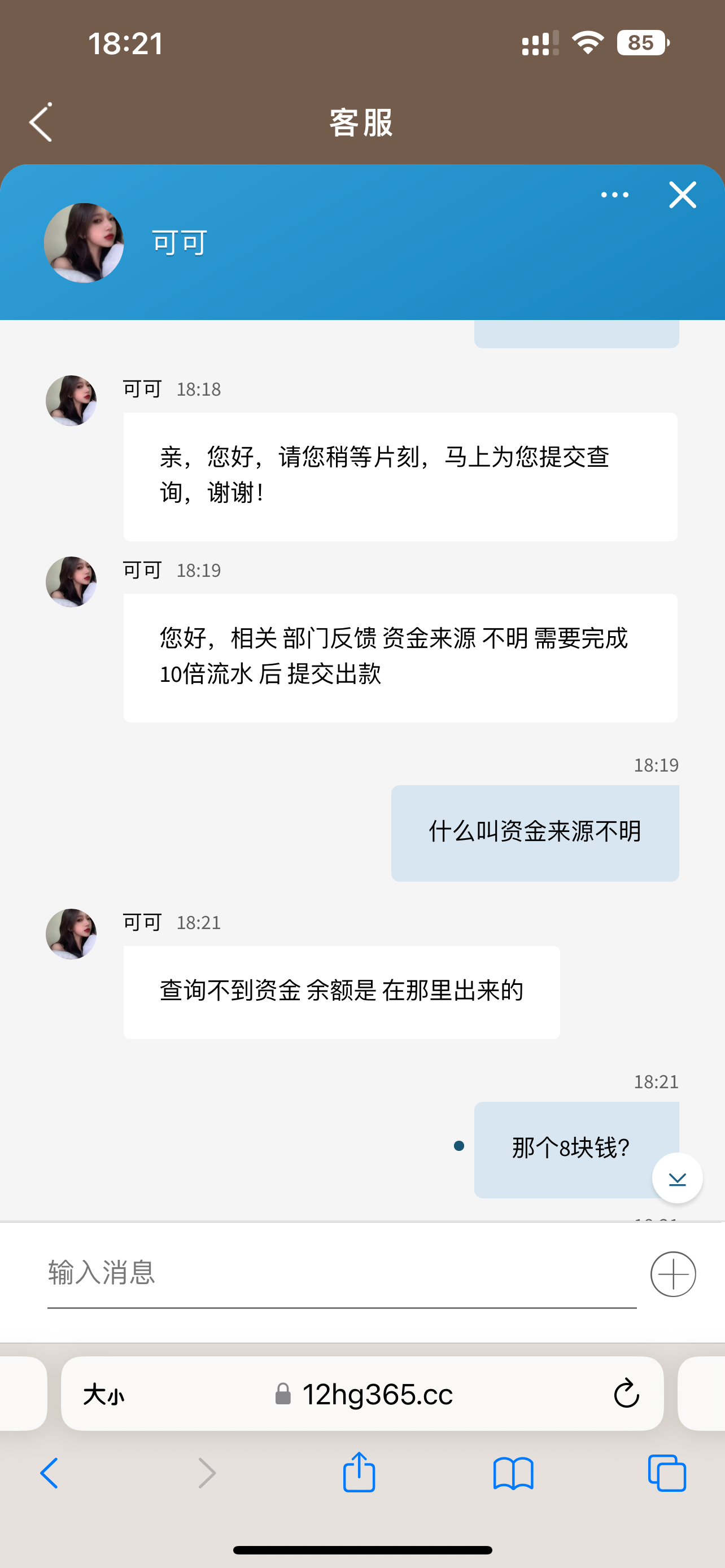 上号发现有8块钱,提现了说资金来路不明