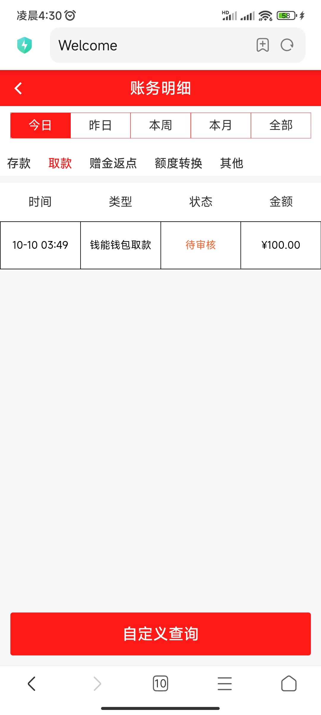 10-10 15:06        K宝取款        待审核        ¥288.00打了几十个号不知道给不给出[em_10]