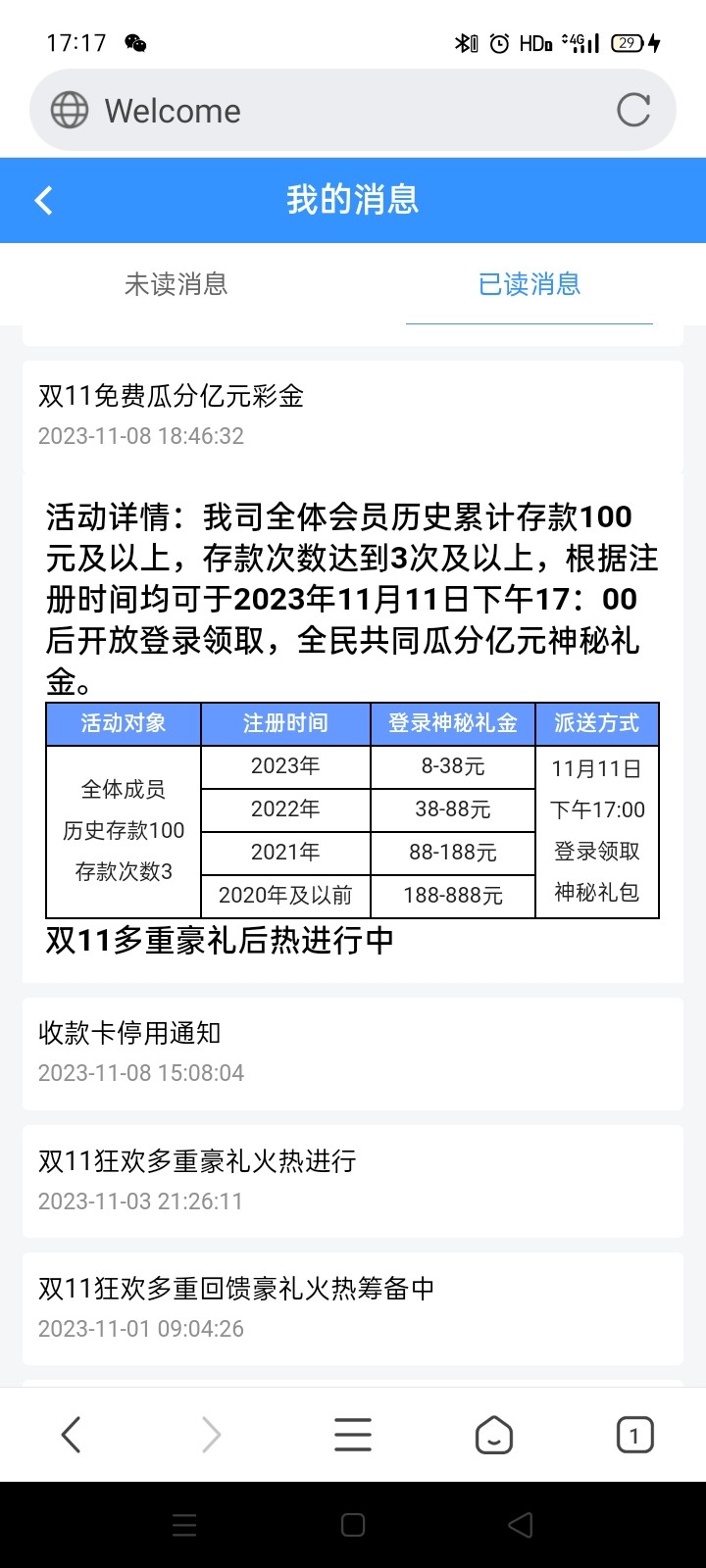 小蓝版双11回馈彩金