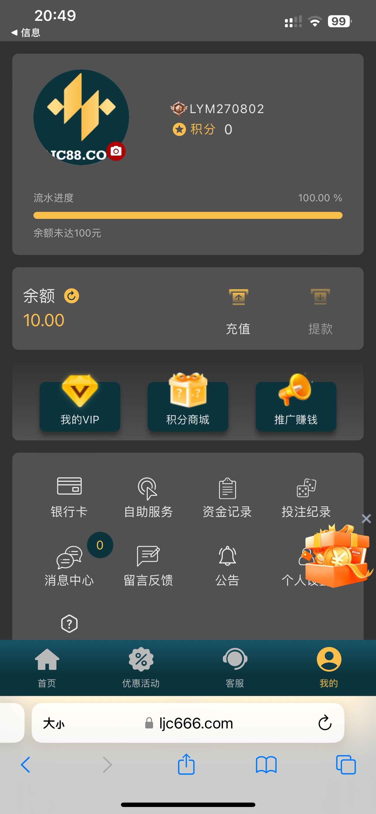 乐金城特邀送10元彩金
