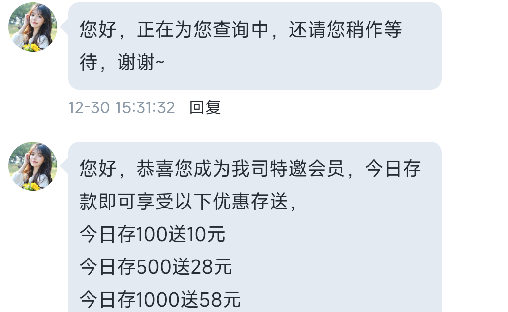 您好,恭喜您成为我司特邀会员,今日存款即可享受以下优惠存送,今日存100送10元今日存500送28元今日存1000送58元今日存5000送128元今日存10000送238元今日存50000送688元今日存100000送1888元今日存500000送8888元今日存1000000送38888元以上特邀贵宾享,一次充值即可享受三重豪礼,救援金,周日大派送。优惠多多,请您在充值到账后未投注前前来申请,谢谢(∩_∩)