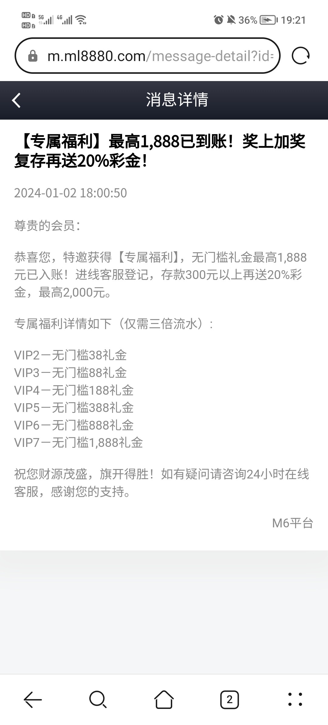 米乐有等级的送彩金