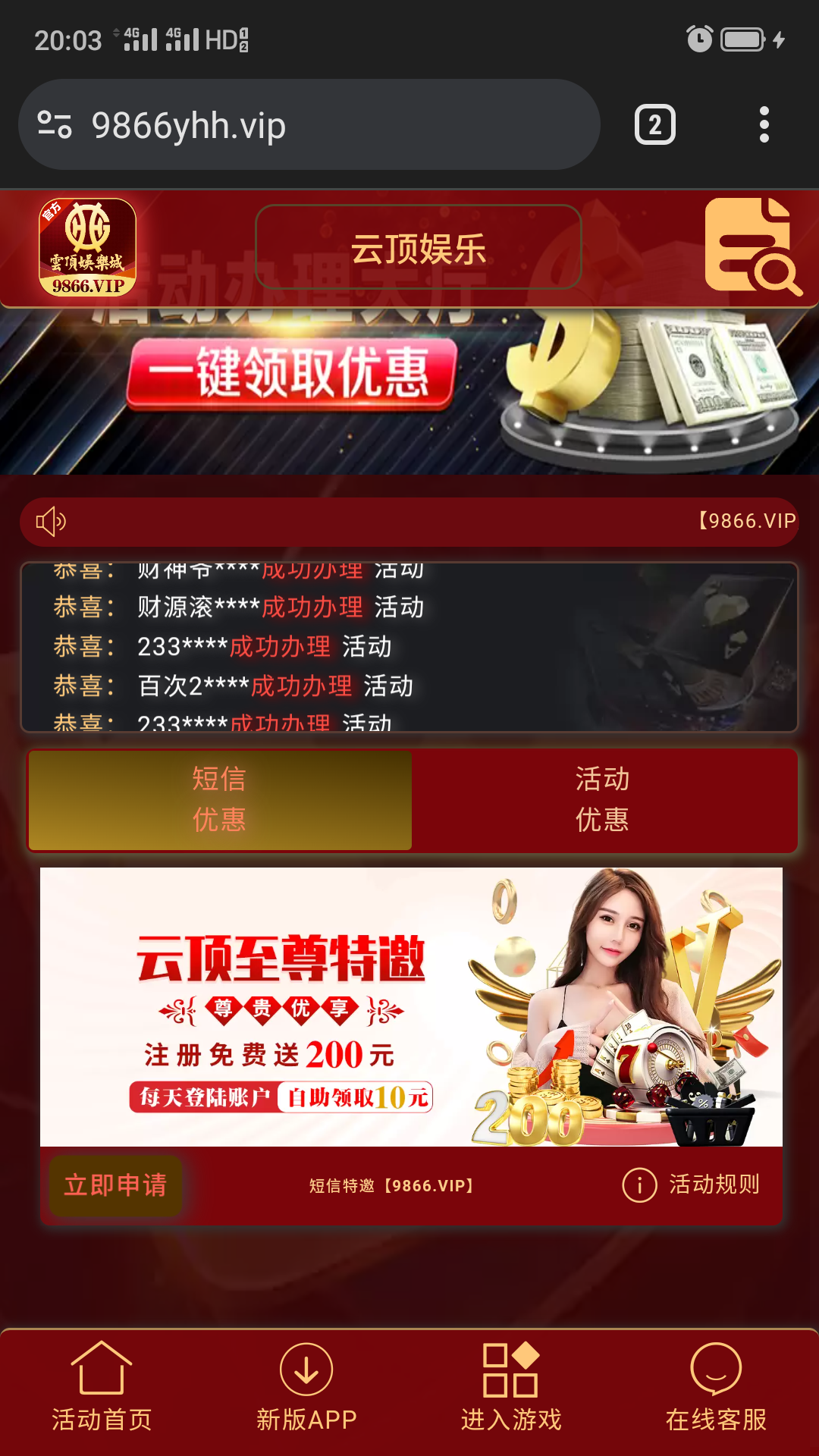 云顶特邀碰瓷送10彩