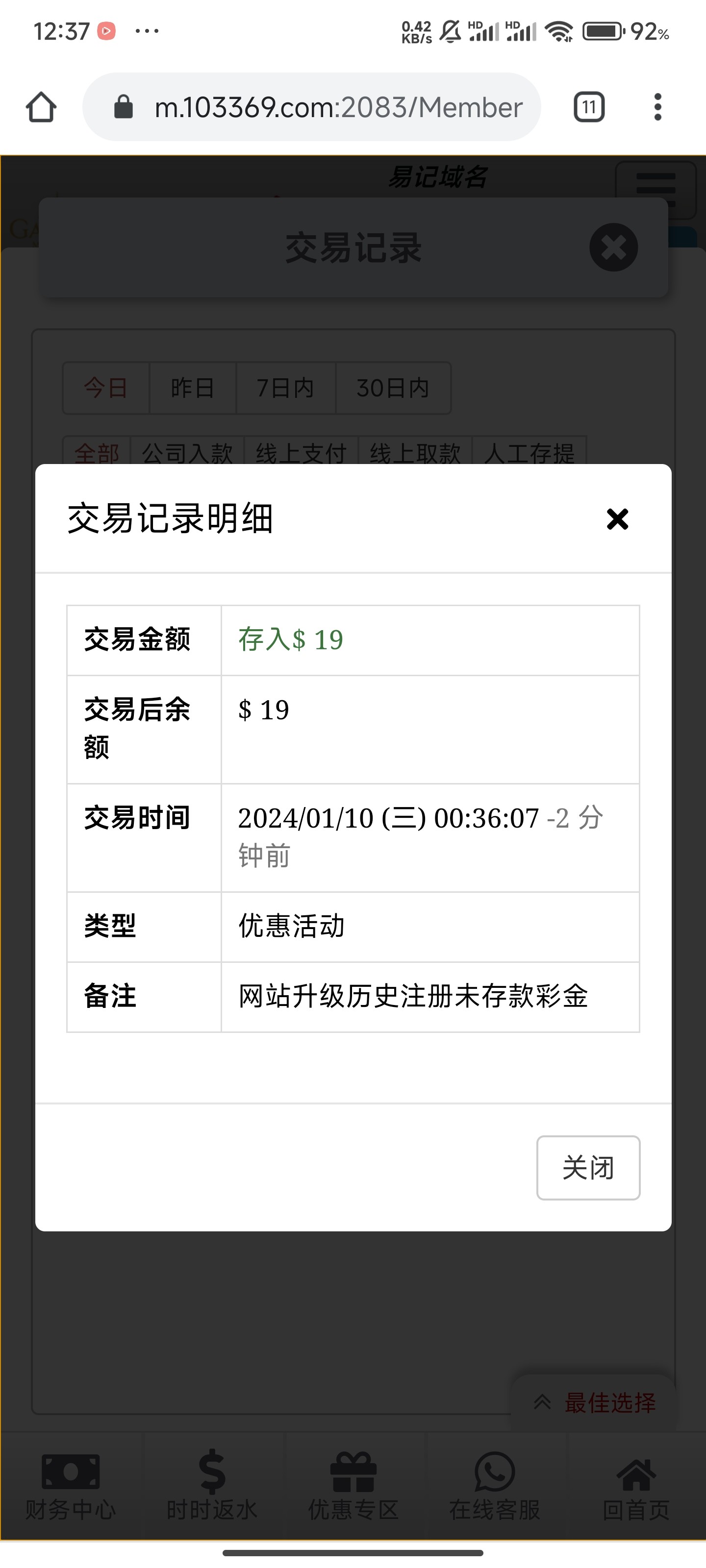 老用户登录回馈彩金