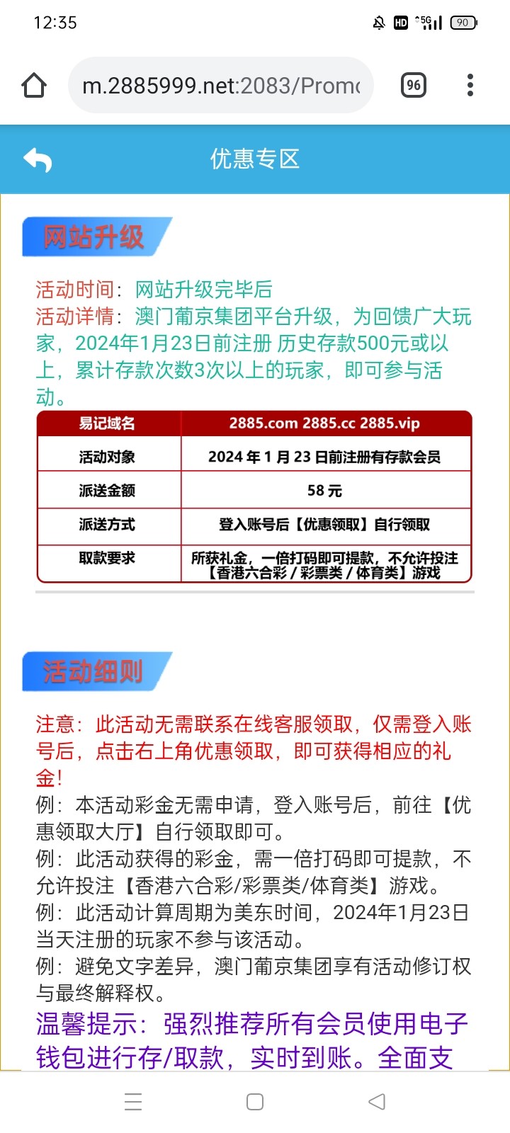 2885老用户回馈彩金