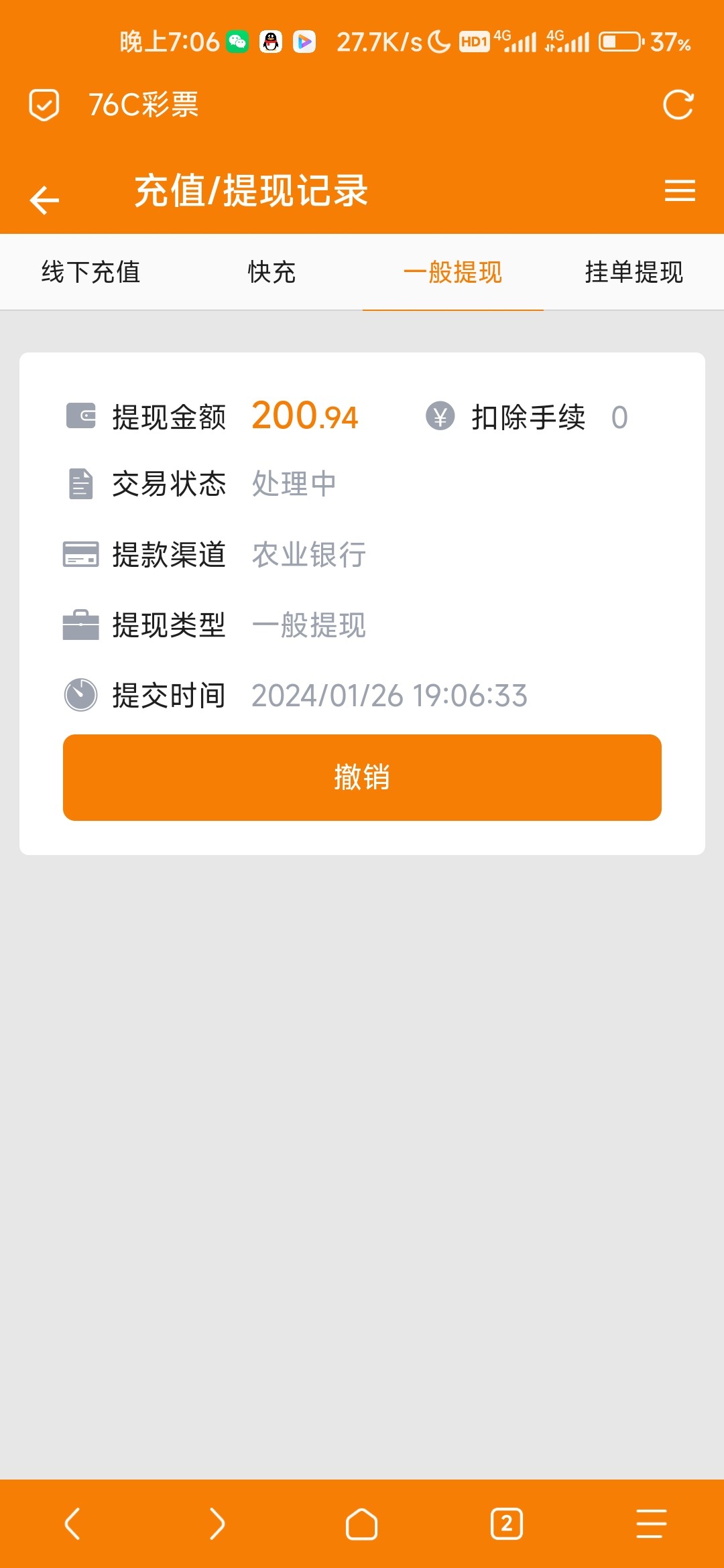 这些彩票台子还可以的,提款都能到
