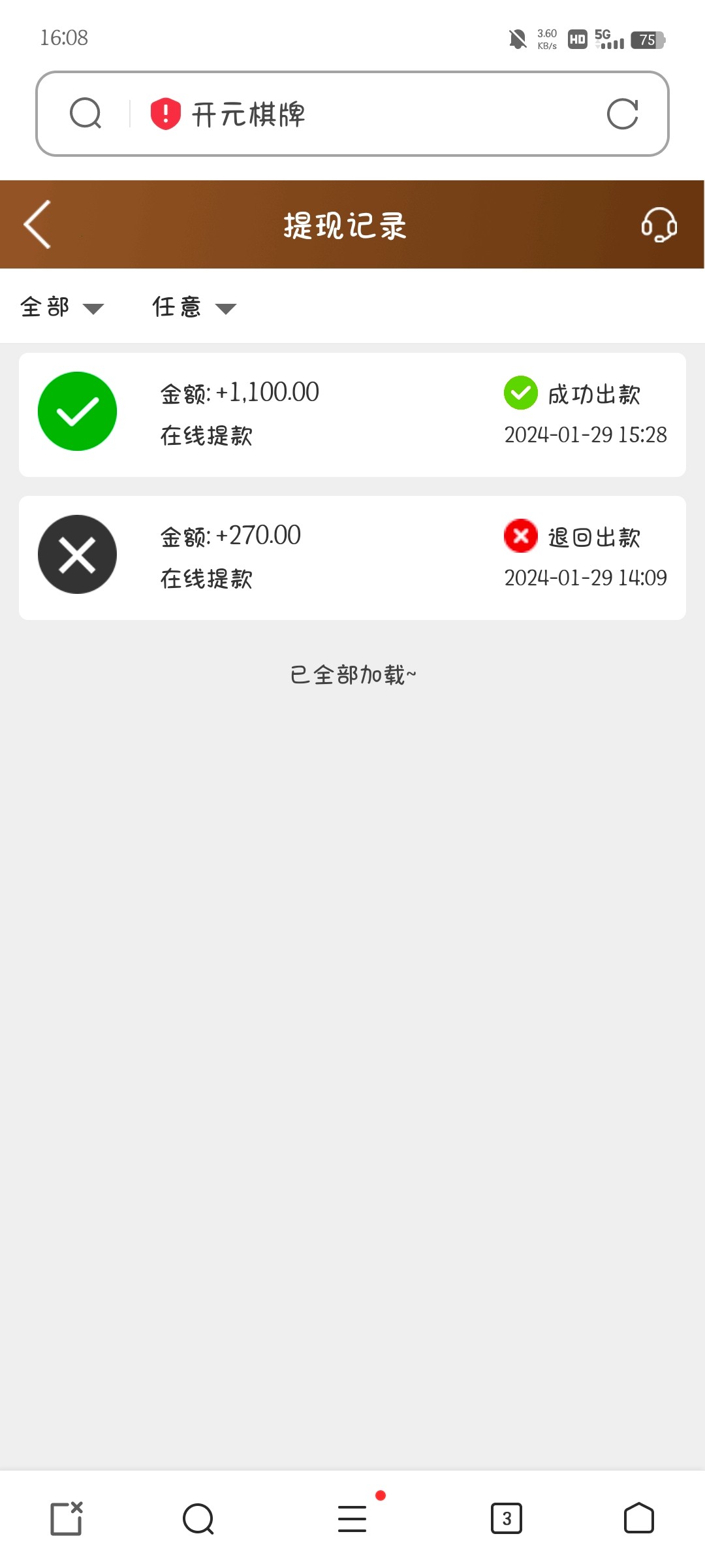 有账号的可以去看看有没有38回馈彩金,有就有,没有就没有,勿喷,有彩金的记得别去玩电子,我玩电子提款退回打了10倍棋牌流水,随便玩玩打到2100,提1100试试水,结果真给出了
