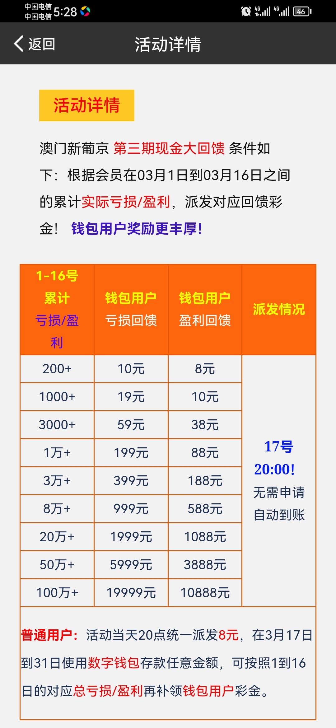 葡京老玩家回馈彩金