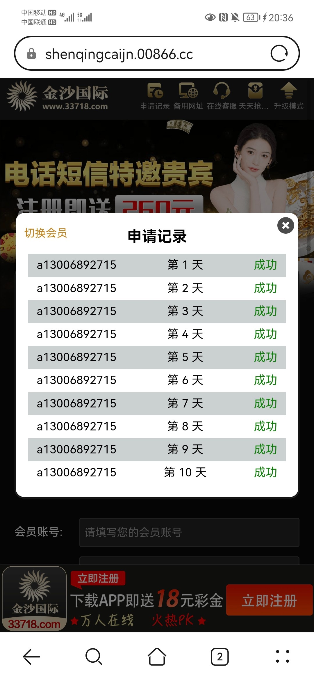 金沙国际电话或短信特邀送260元彩金,分20期自助领取,每天领13元,提交申请了秒到账,游戏限制电子棋牌捕鱼,不能玩双面的,余额满118元即可用钱包出款!!!