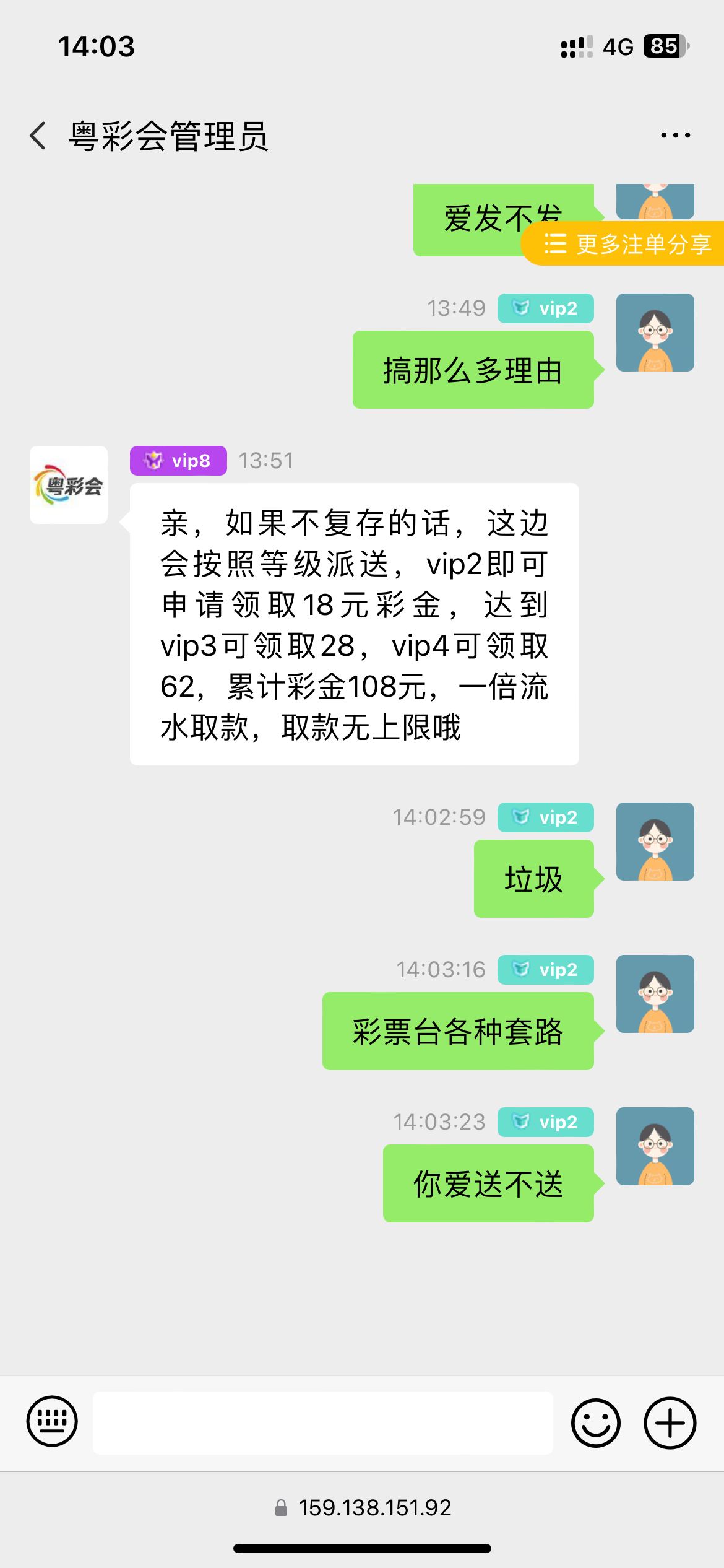 这跟另外一个彩票平台一样的套路 免费领取了108结果提现的时候要让你充值一半