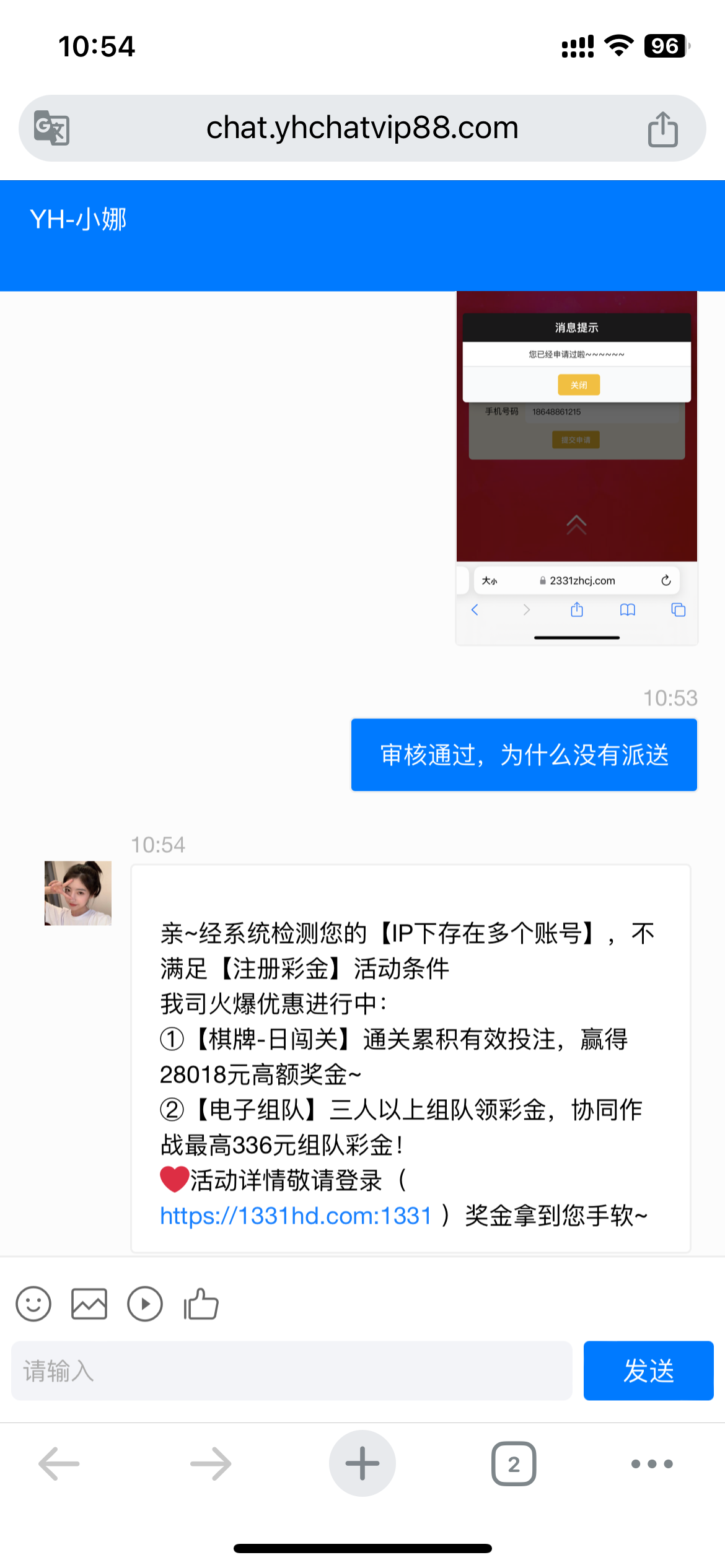 信息还没发,一点进去客服就回复多IP