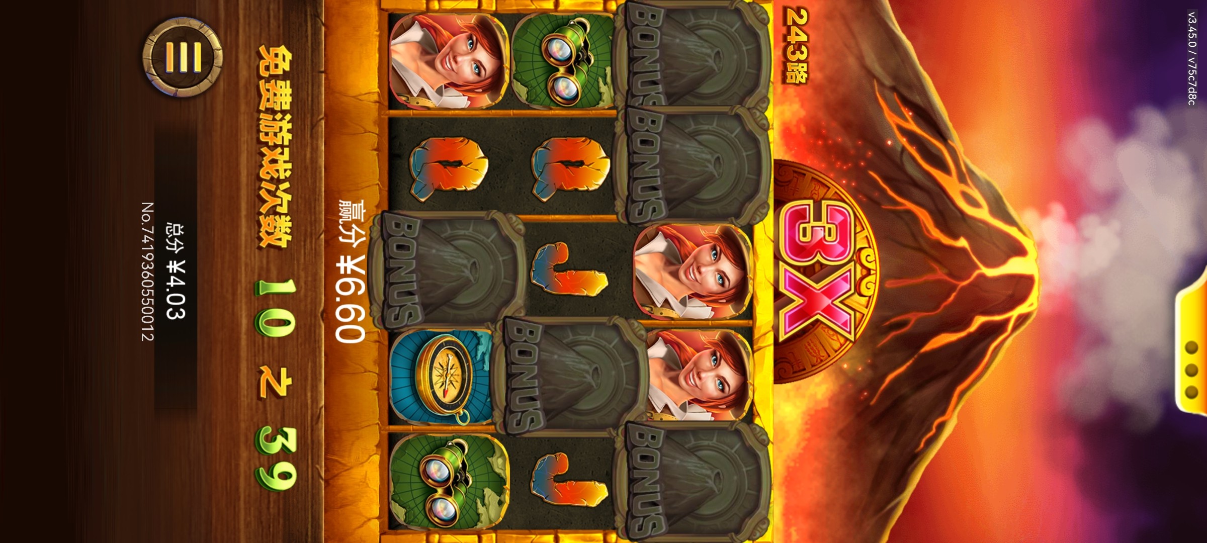 印象里以前好像收到过这台子短信,充值了说不是特邀给送了28,本彩3倍,黑金刚这游戏免费给的真牛逼,连出两次3连合计78次免费,就是总爆奖250