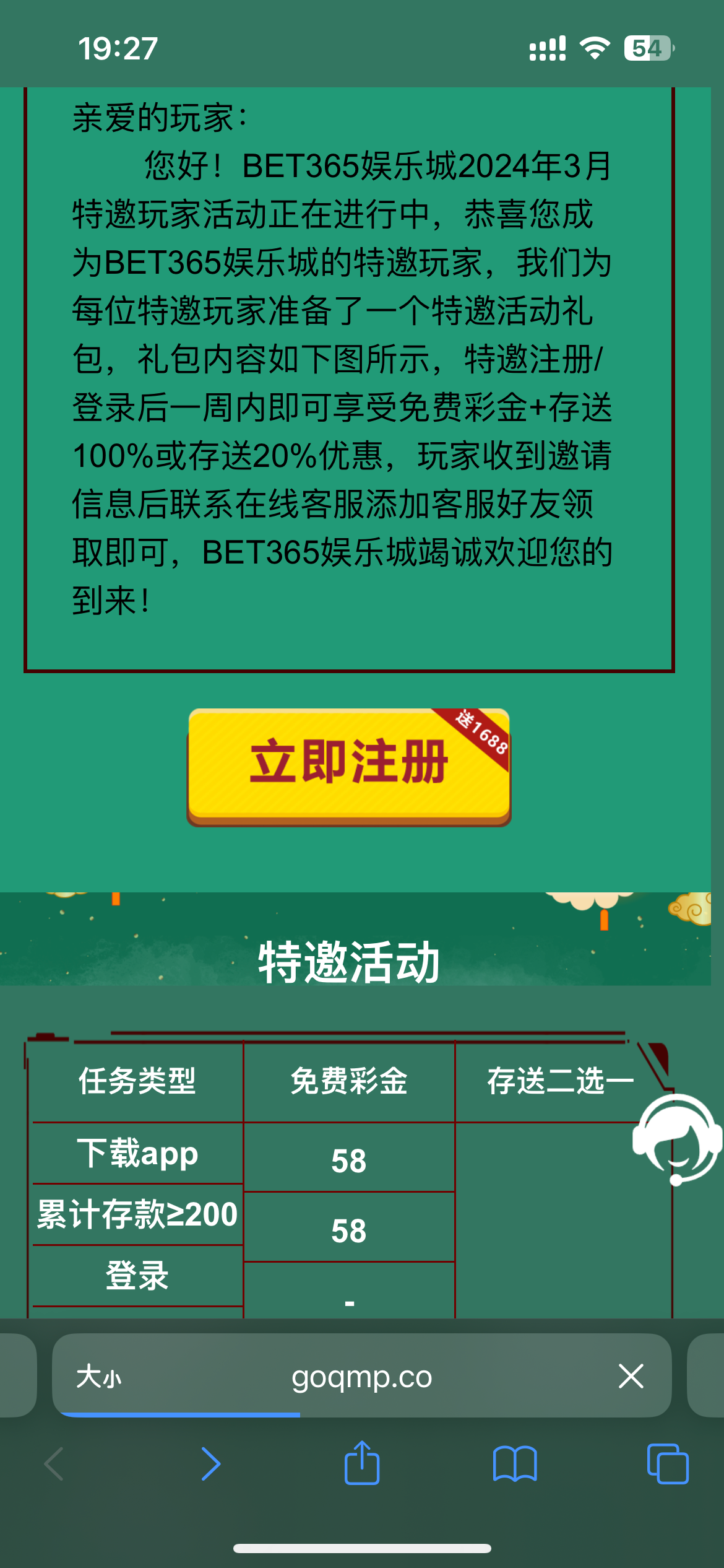 bet365特邀58元彩金