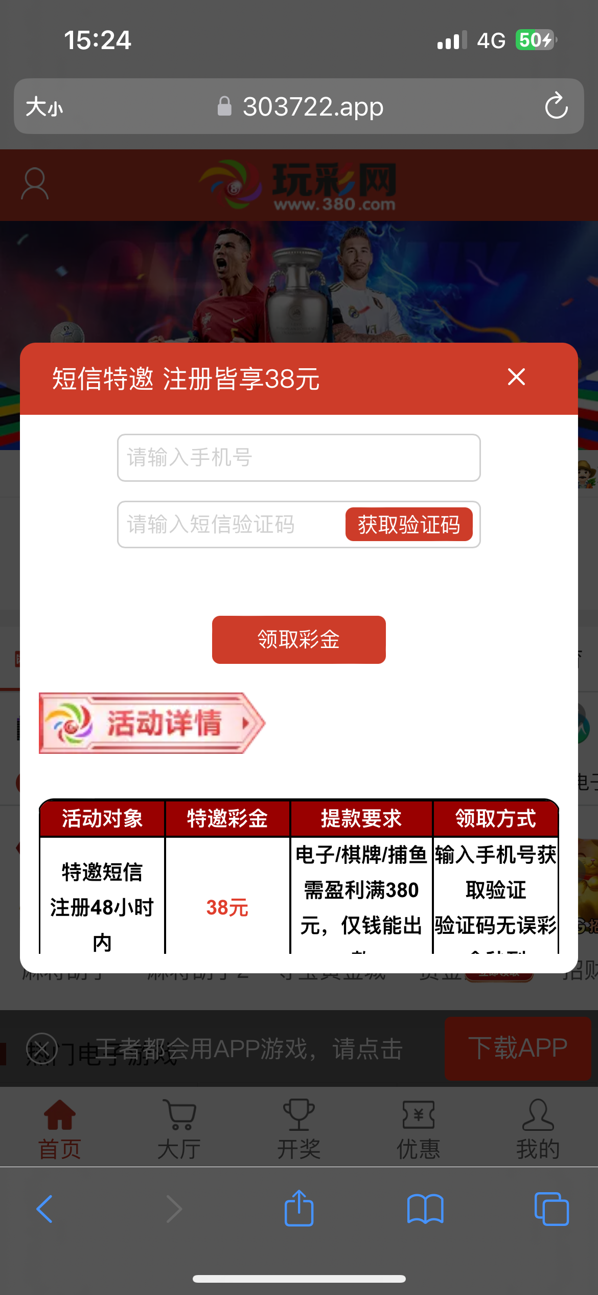 玩彩特邀送38元彩金