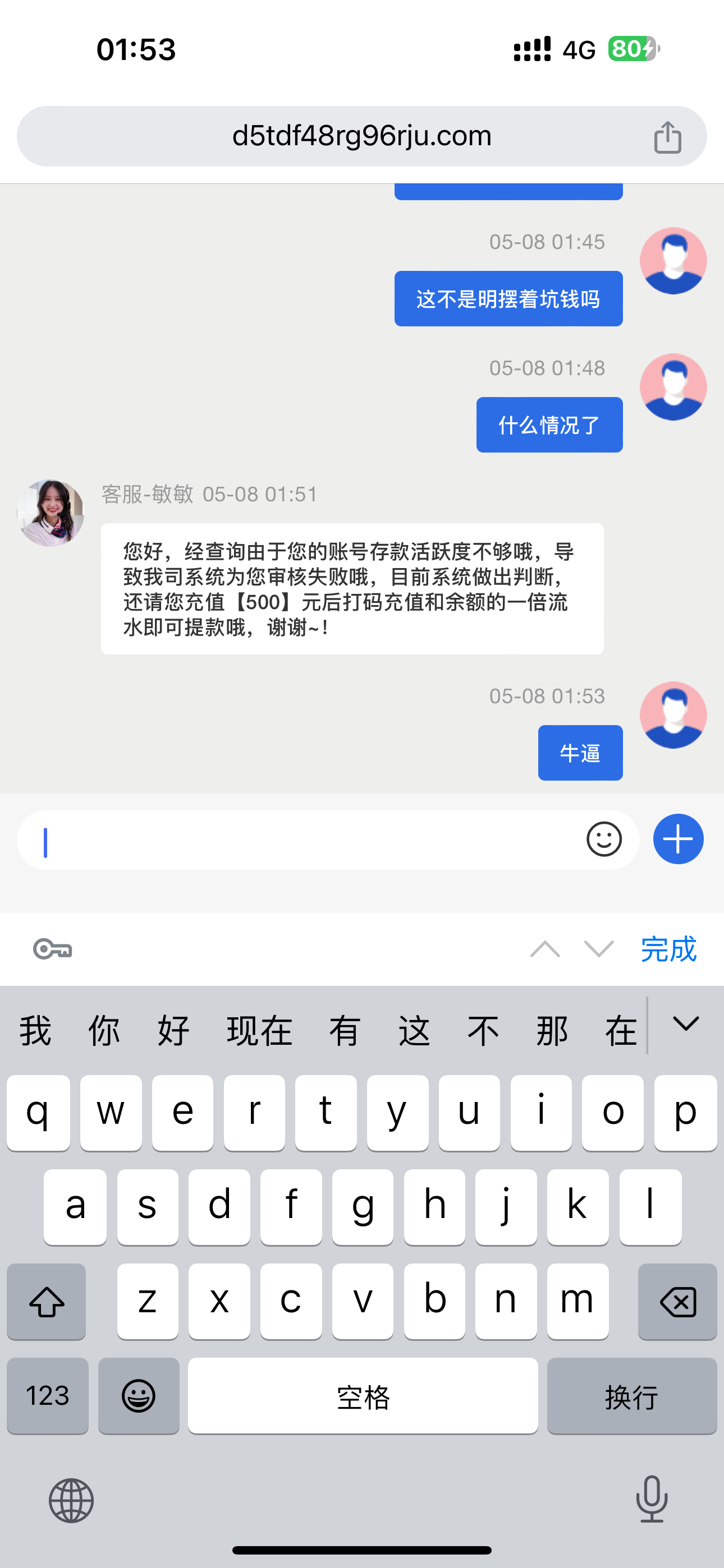 哥们他是提现的时候就说要充值激活然后激活一次后又说不够
