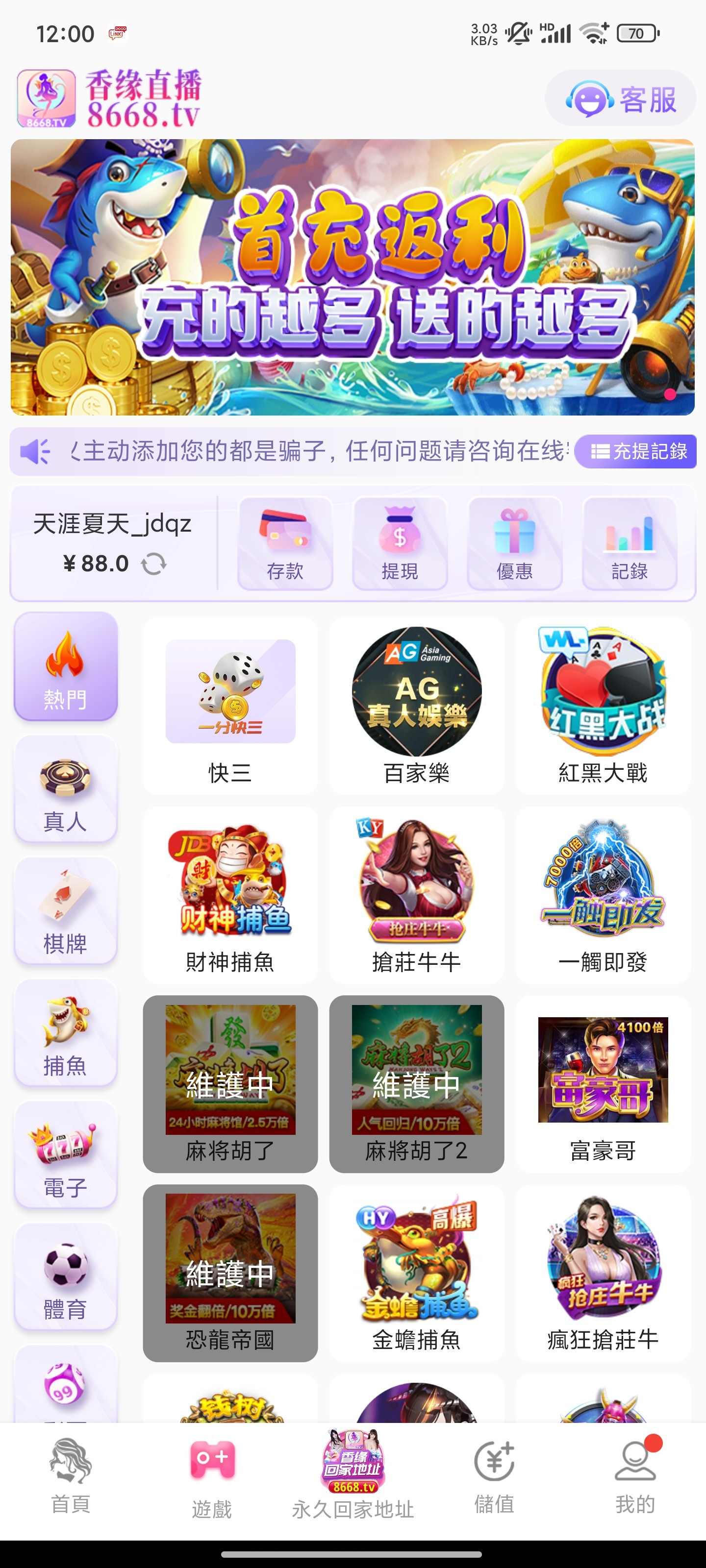 香缘特邀送88元彩金
