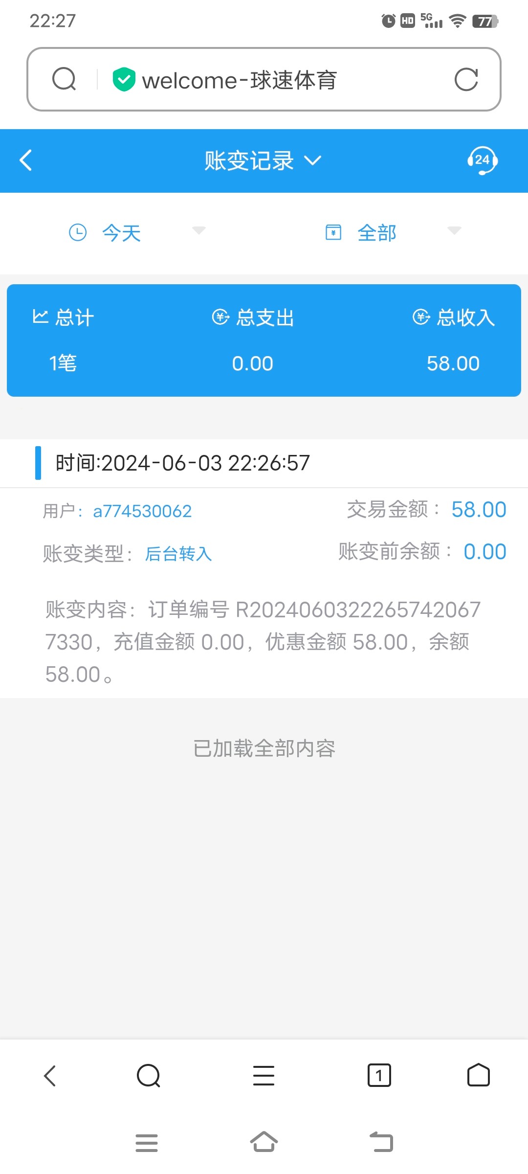 到账了