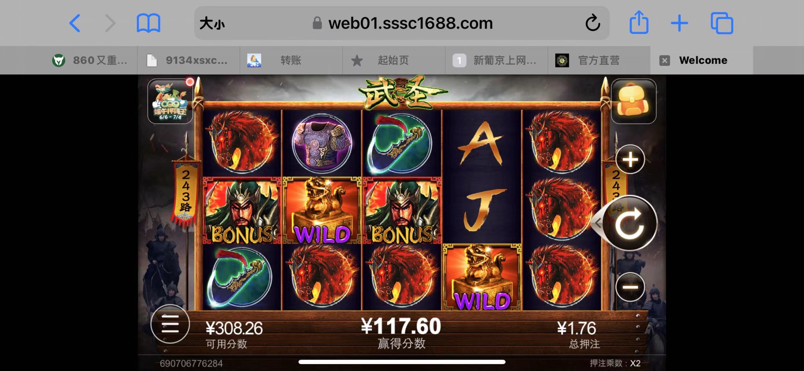 第二个号 和860的特邀彩金同时打 直接出两个号