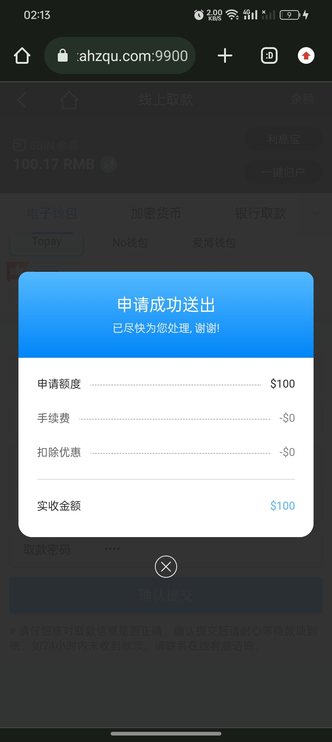 提现了600
