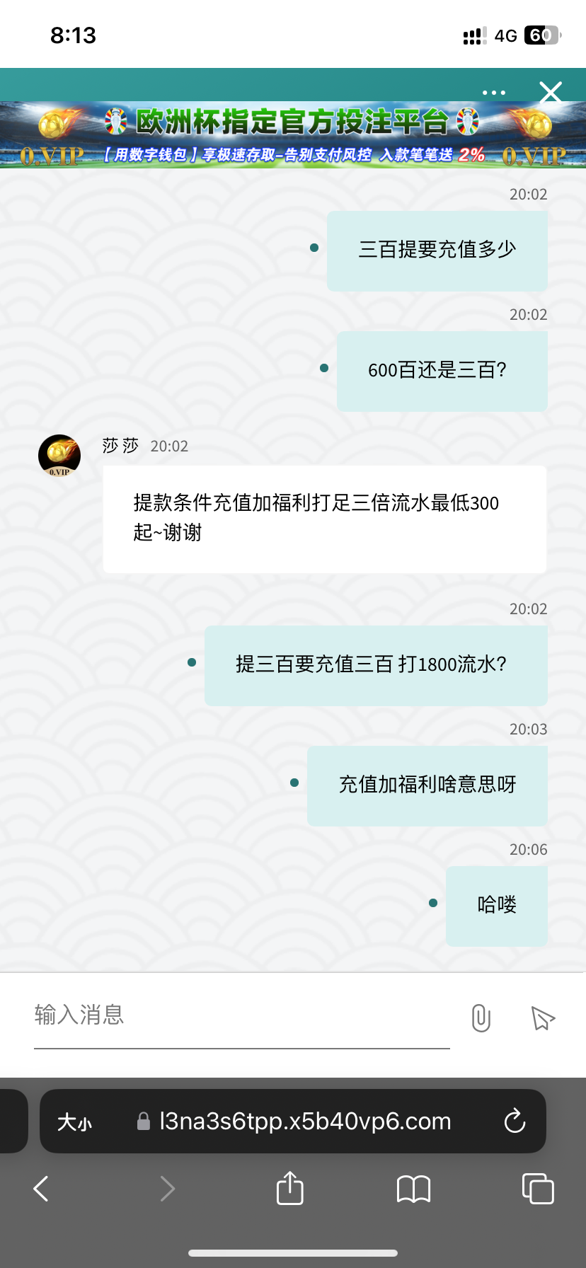 新用户注册完善好信息找在线客服申请18彩金,人多要排队,可以等人少再去,具体自测吧切记勿充值。